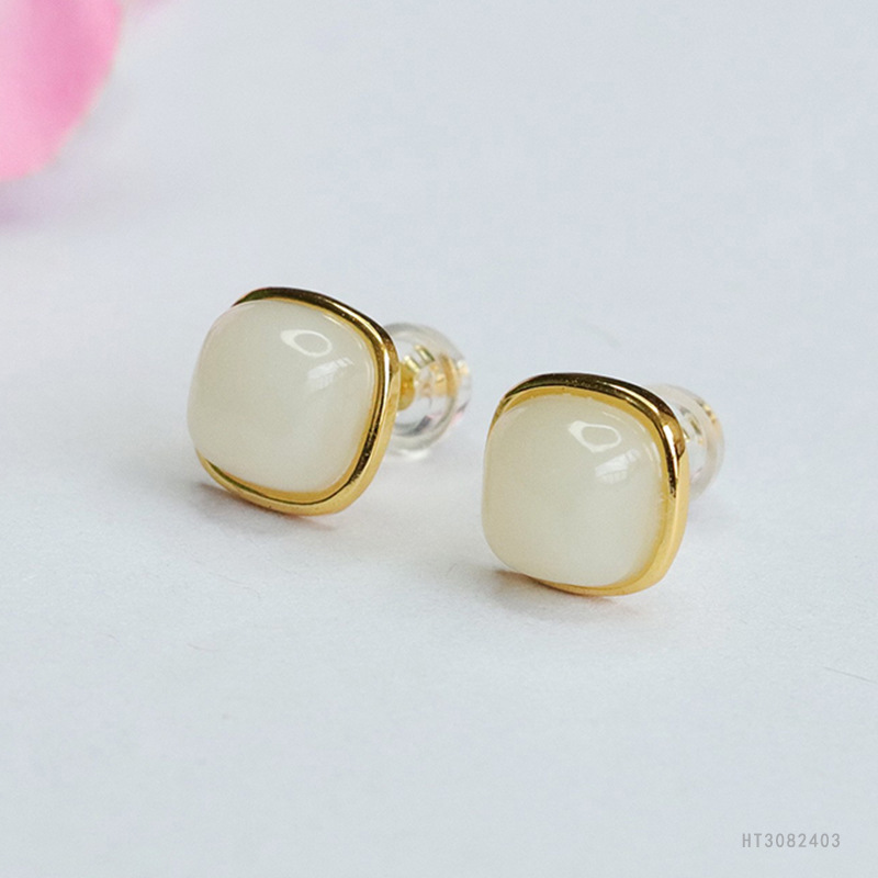 S925 серебряные инкрустированные серьги Hetian Jade White Jade сахара (HT3082403)