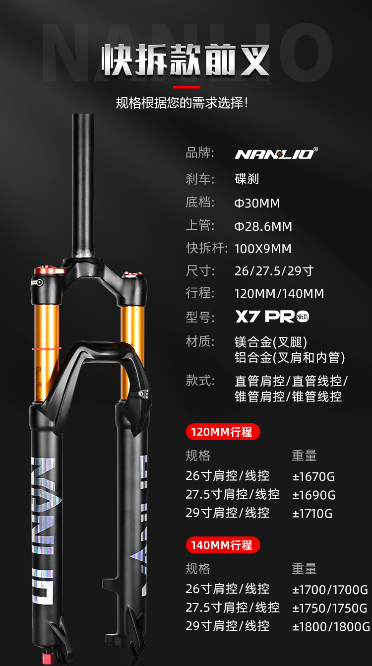 Nanlio South Bird X7PRO передняя вилка для горного велосипеда 140-тактная пневматическая амортизирующая 26 27,5 29 передняя вилка
