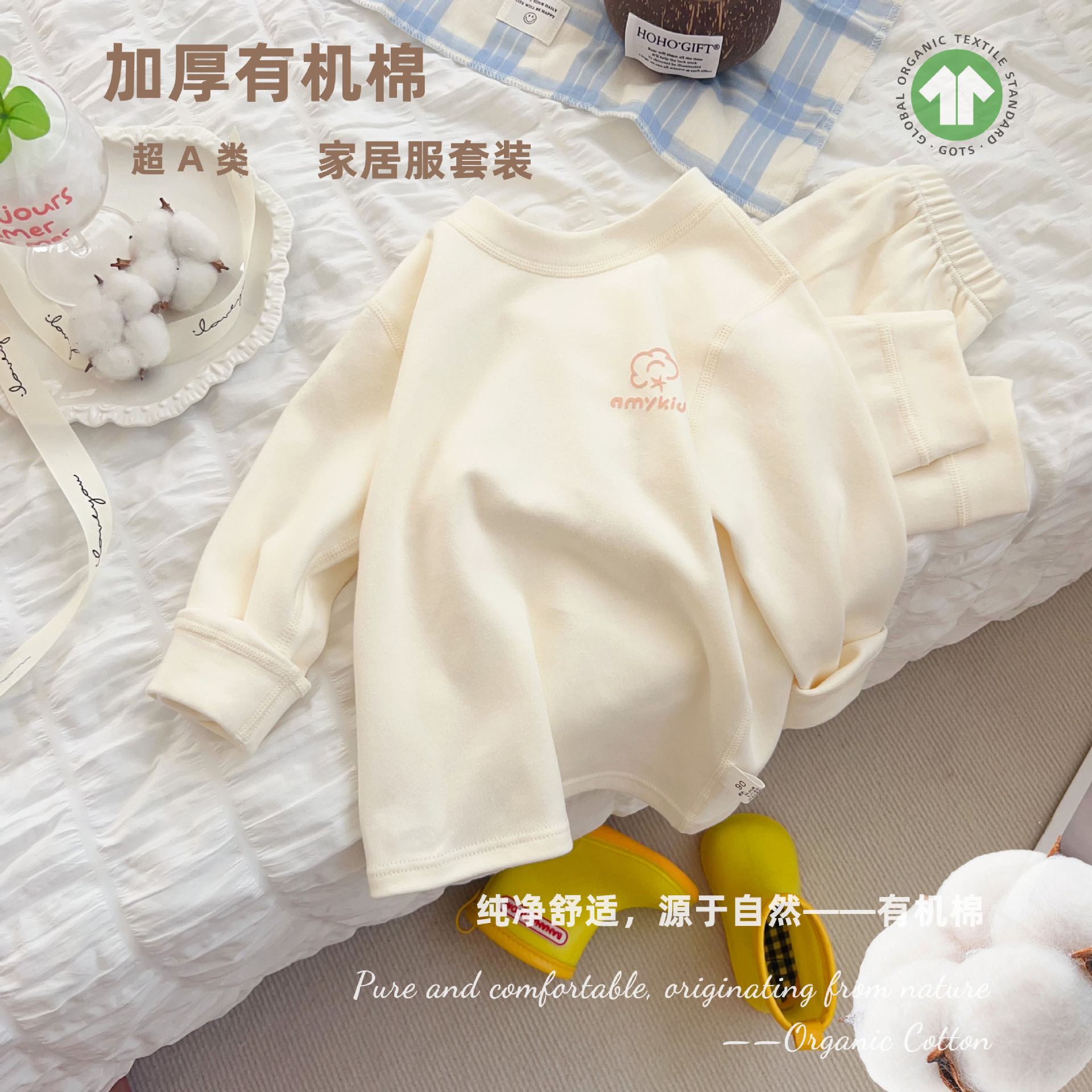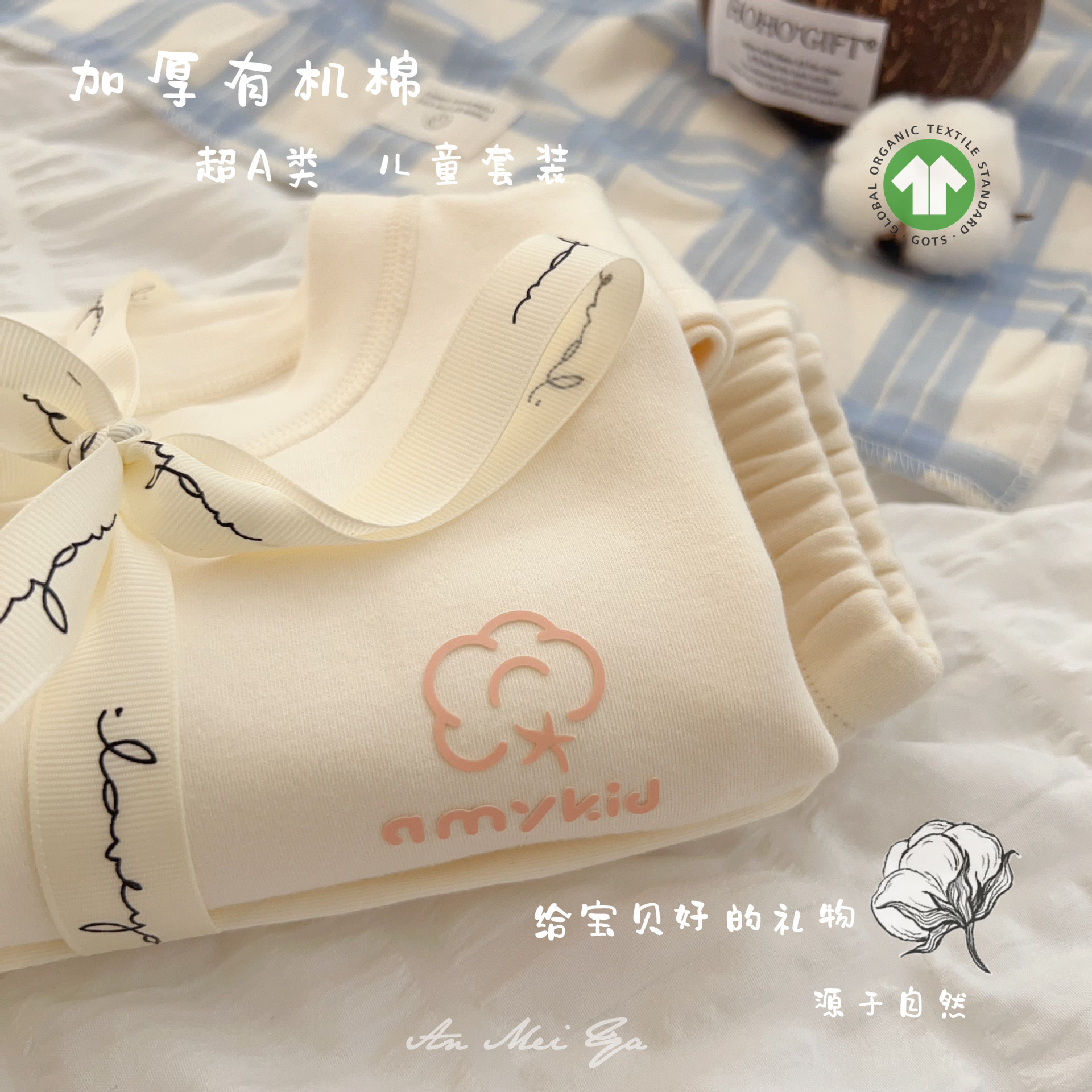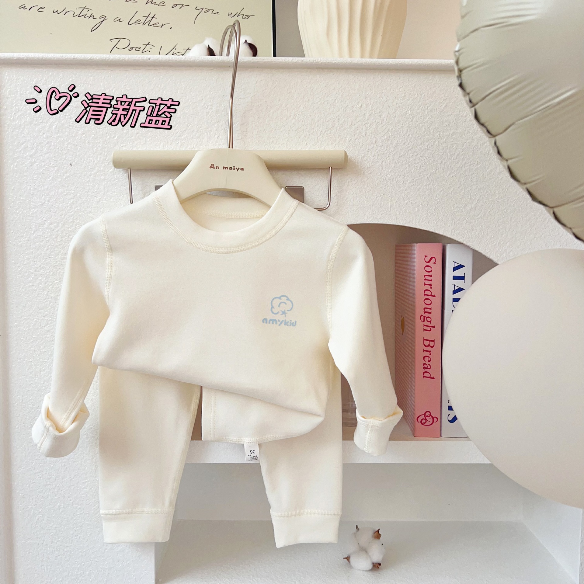 Детский комплект нижнего белья из органического хлопка Anmeiya, осенний комплект одежды, корейская версия, унисекс, термобелье и штаны с начесом, оптовая продажа от производителя.