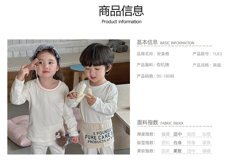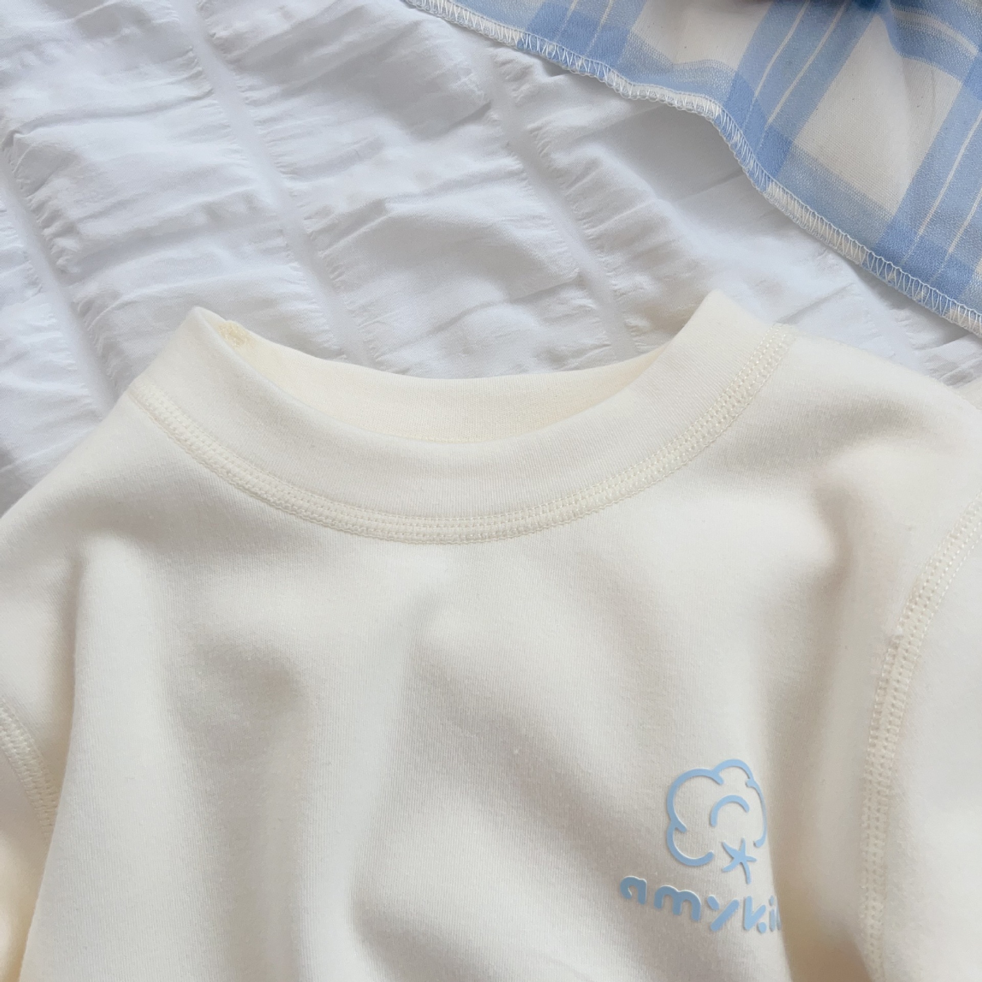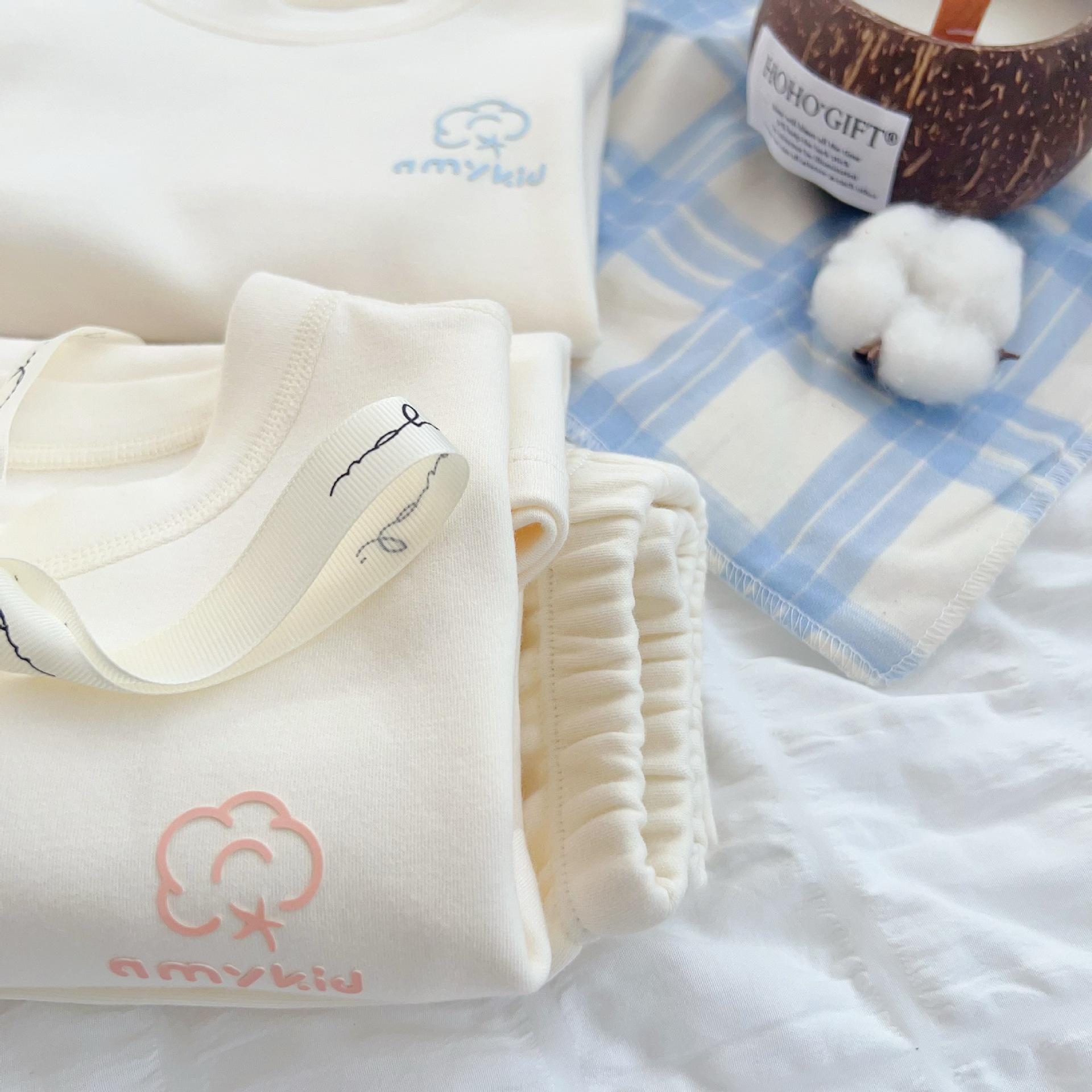 Детский комплект нижнего белья из органического хлопка Anmeiya, осенний комплект одежды, корейская версия, унисекс, термобелье и штаны с начесом, оптовая продажа от производителя.