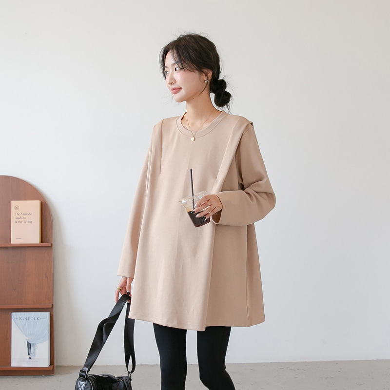 Весенняя и осенняя одежда для беременных Корейский стиль, топ средней длины для беременных в Корейском стиле, качественный топ с воздушным слоем принцессы