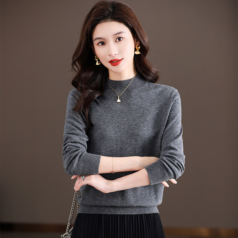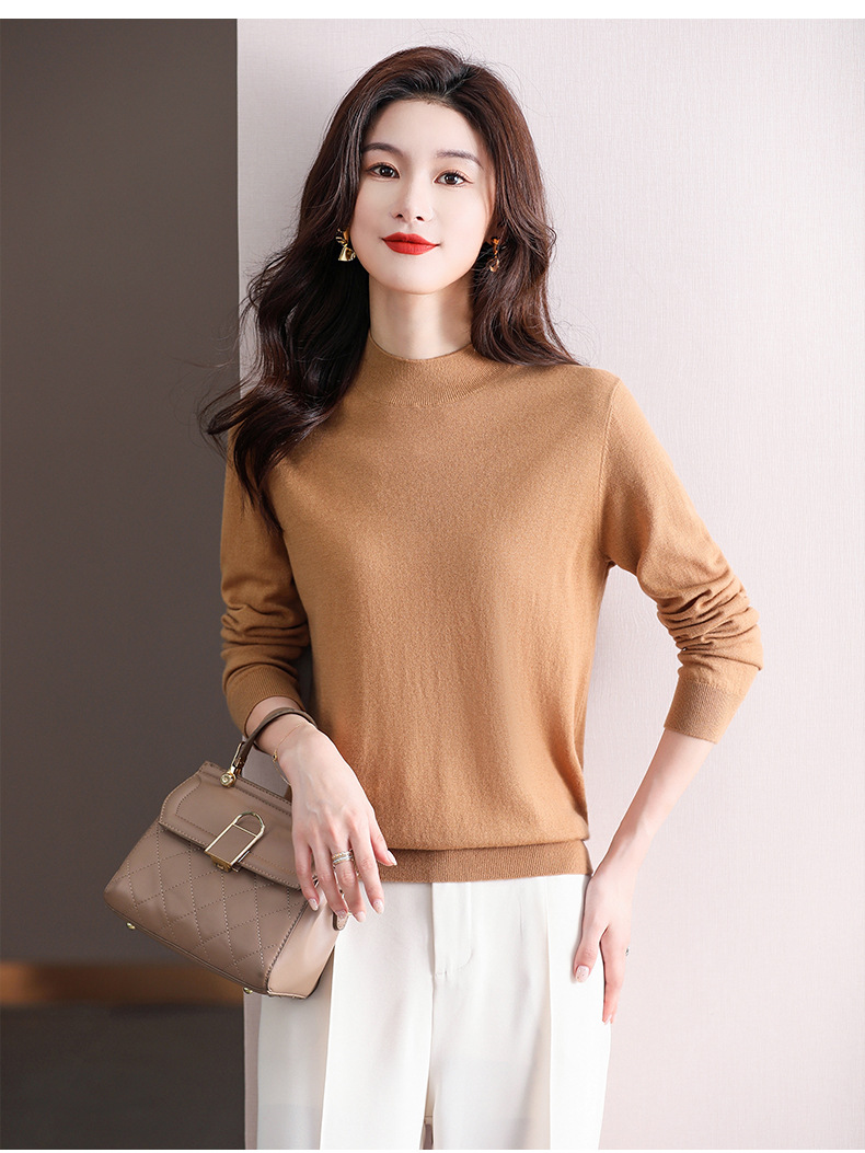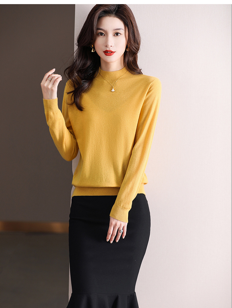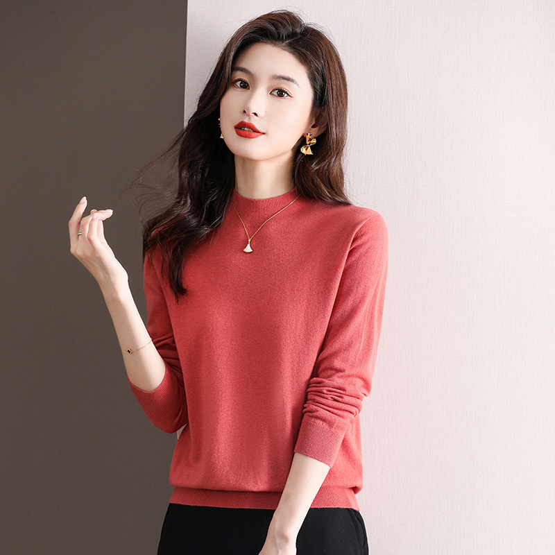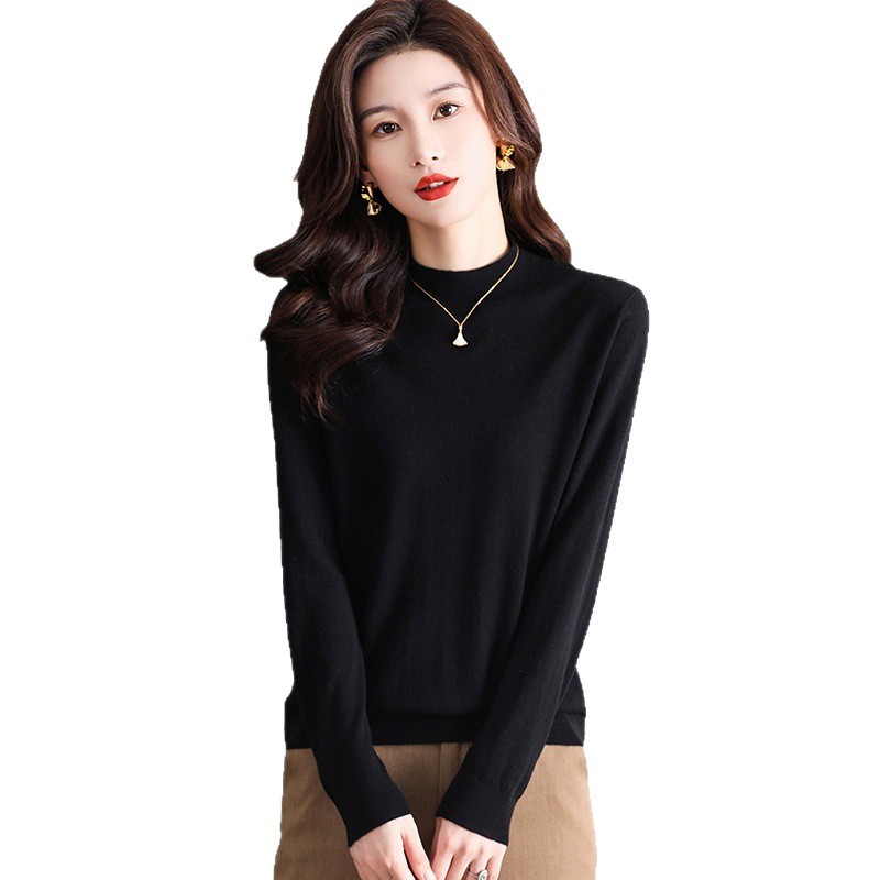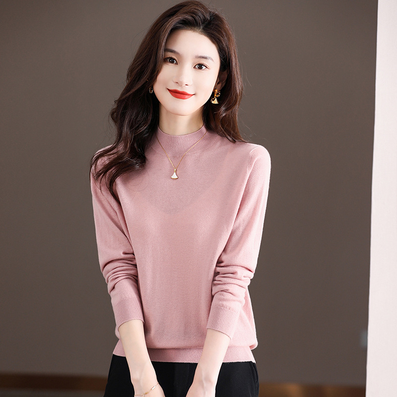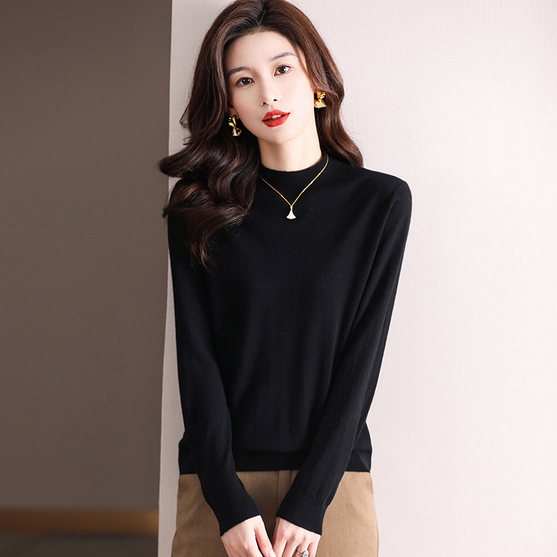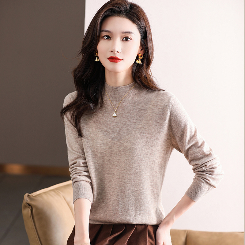 Шерстяной свитер Женский тонкий свитер из 100 шерсти с высоким воротом Женская Базовая рубашка Весна Осень Зима Внутренний вязаный Топ