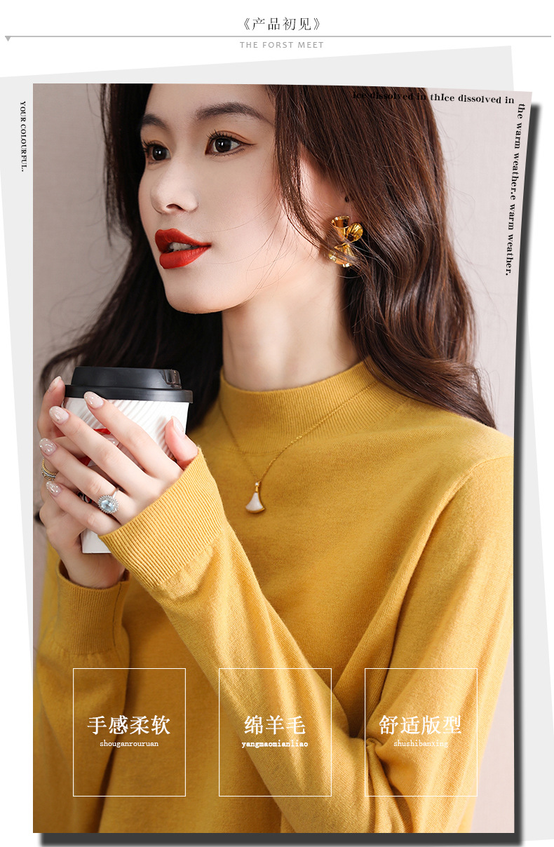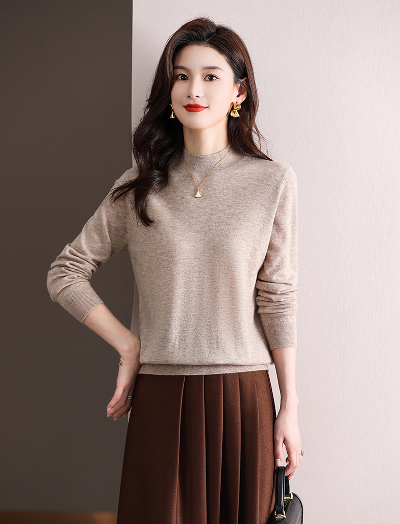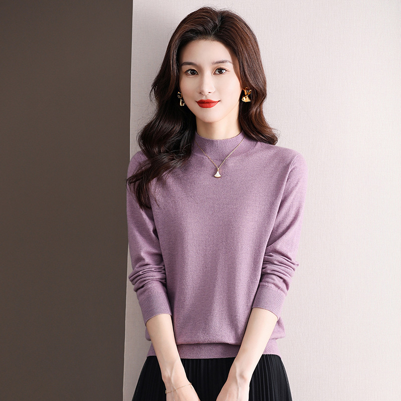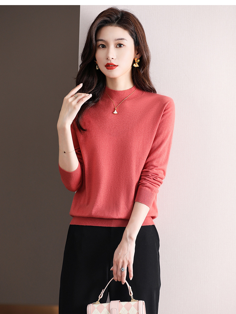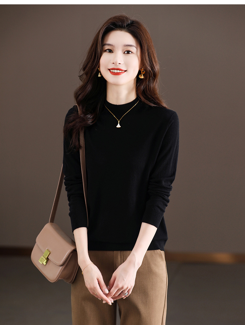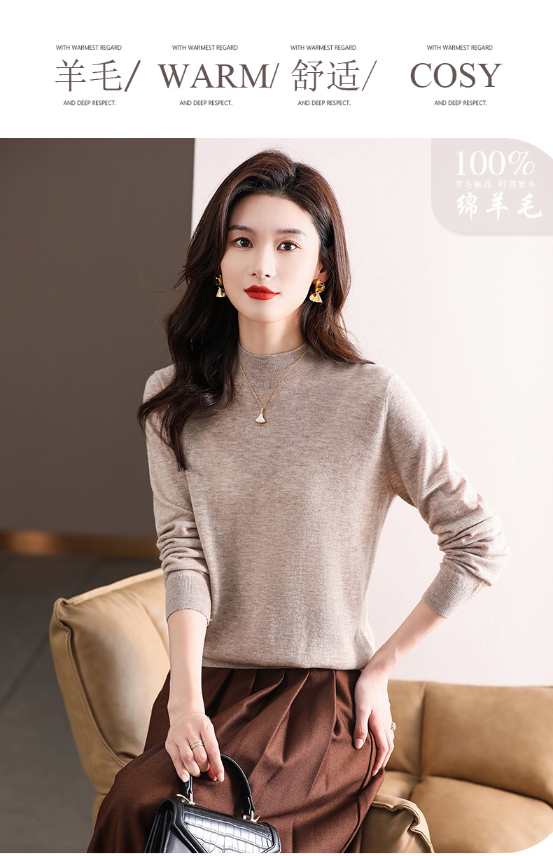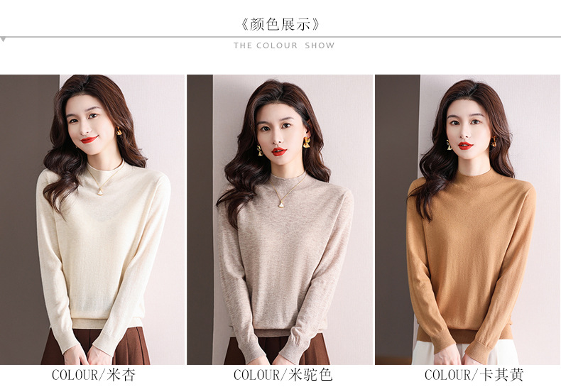 Шерстяной свитер Женский тонкий свитер из 100 шерсти с высоким воротом Женская Базовая рубашка Весна Осень Зима Внутренний вязаный Топ