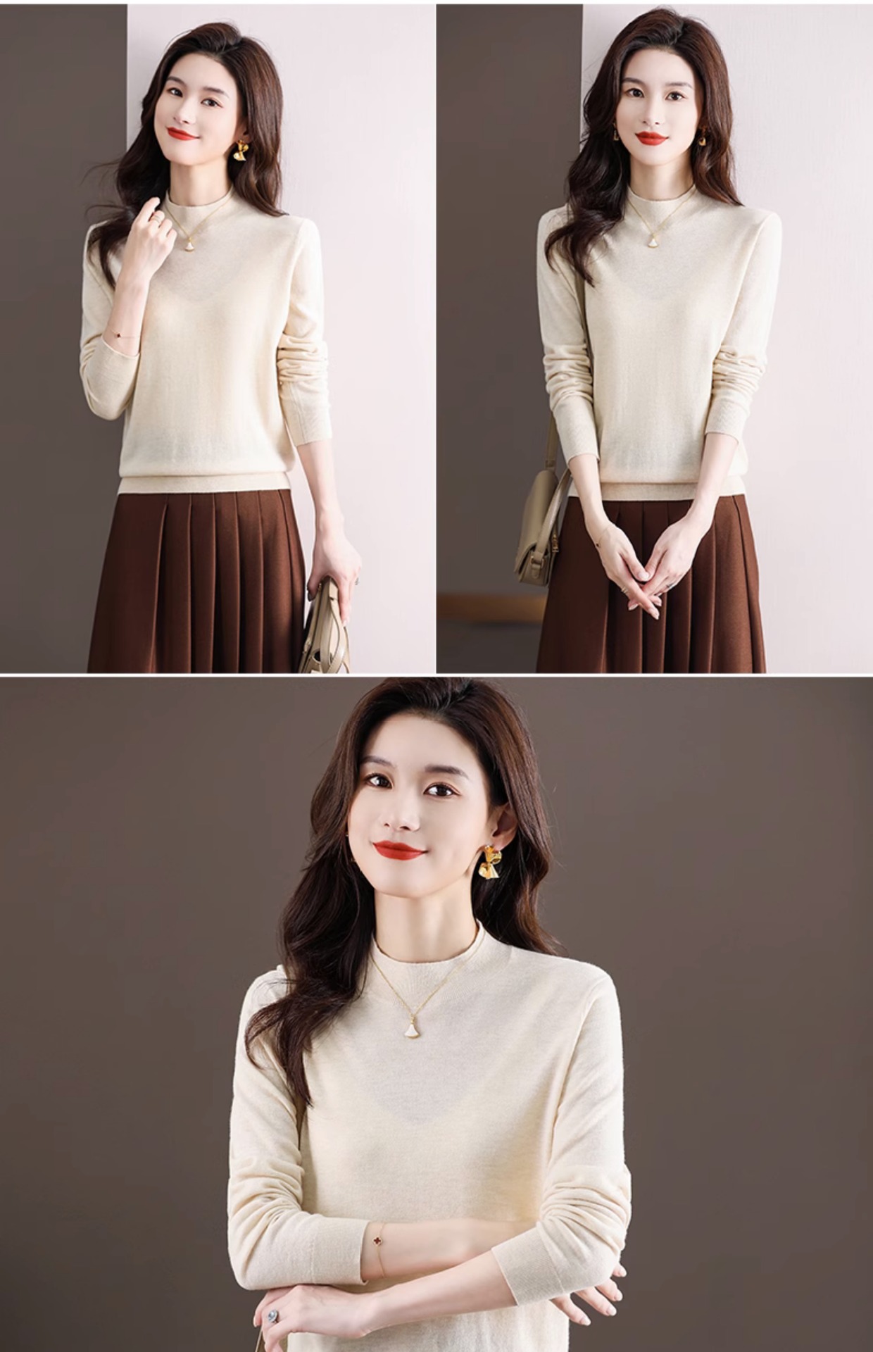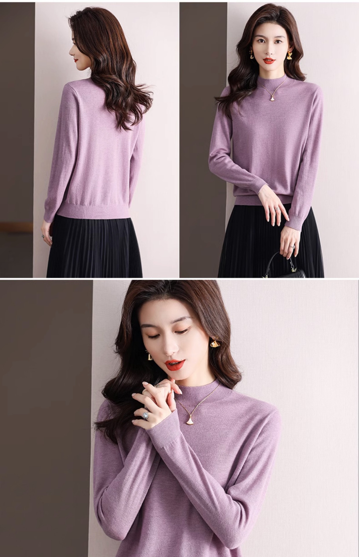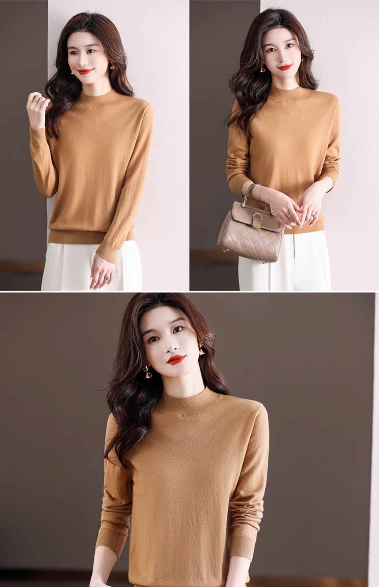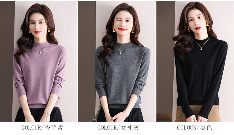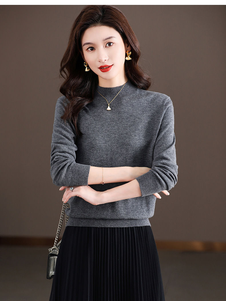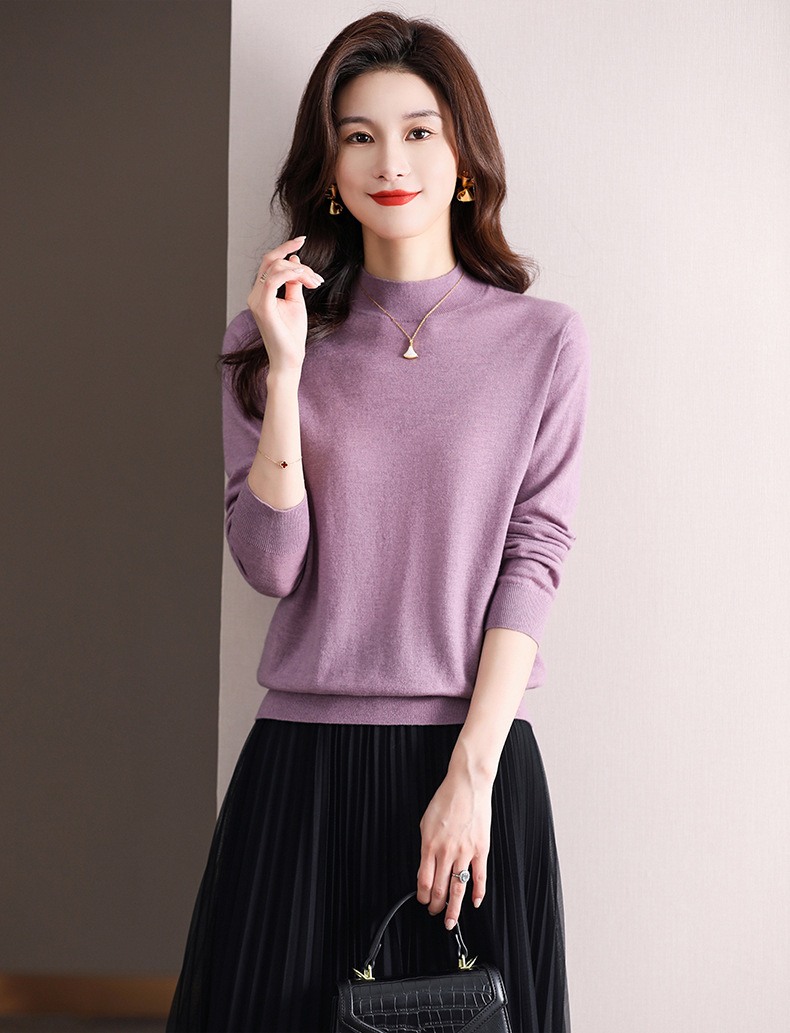 Шерстяной свитер Женский тонкий свитер из 100 шерсти с высоким воротом Женская Базовая рубашка Весна Осень Зима Внутренний вязаный Топ