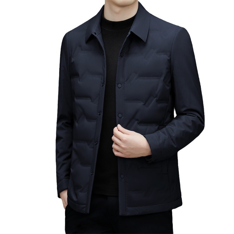 Высококачественный пуховик, Мужская Зимняя Мужская Легкая короткая теплая зимняя одежда для папы среднего и пожилого возраста, с лацканами, куртка-рубашка