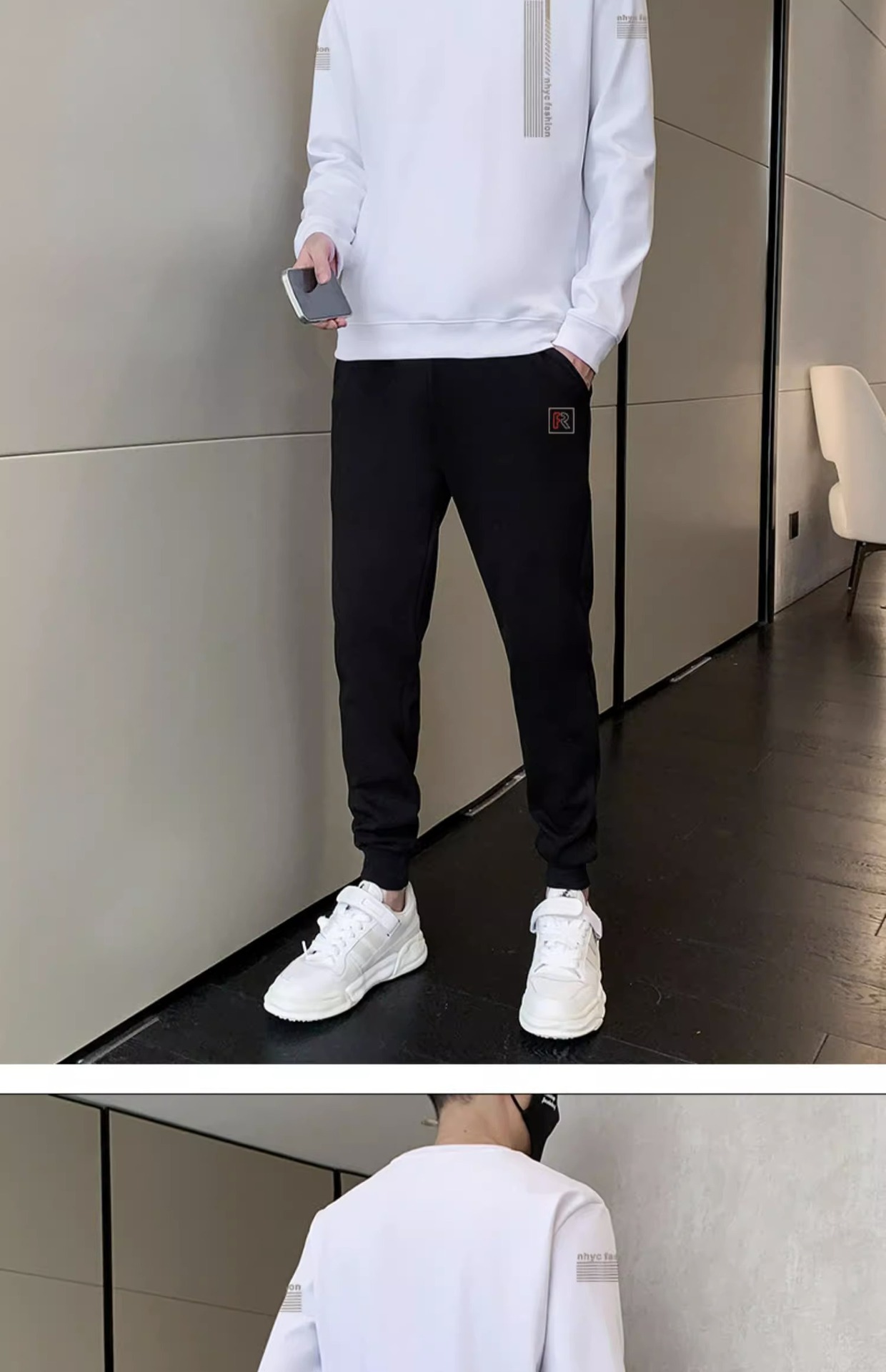 Повседневный спортивный костюм мужской осень Новый свободный свитер с длинным рукавом Молодежный модный красивый комплект из двух предметов в Корейском стиле Новый