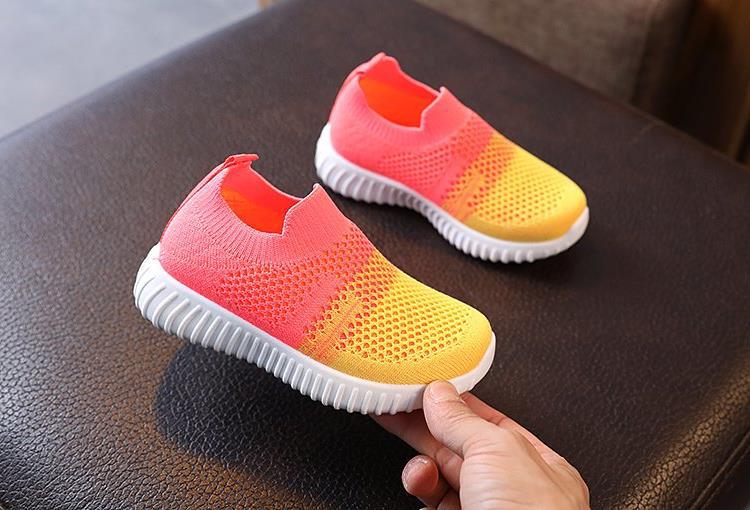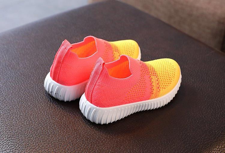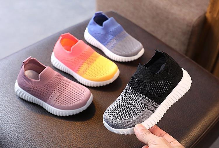 Демисезонные дышащие кроссовки для старших школьников в стиле колор-блок, модные повседневные кеды, корейские кроссовки унисекс из ткани Fly-knit для экспорта.