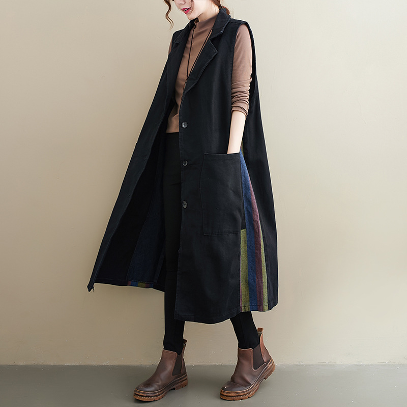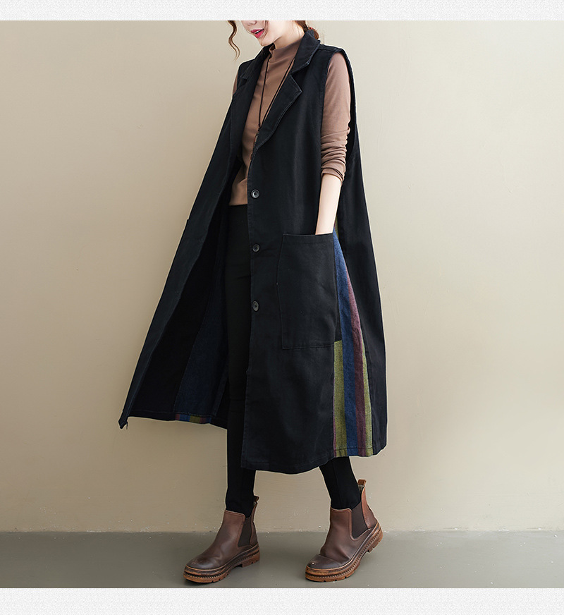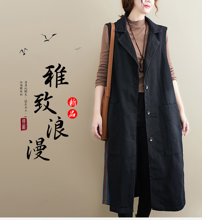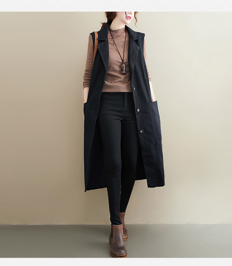 Джинсовый жилет Женская Свободная куртка больших размеров выше колена, длинный жилет без рукавов, Весенняя Новая модная повседневная куртка, модная