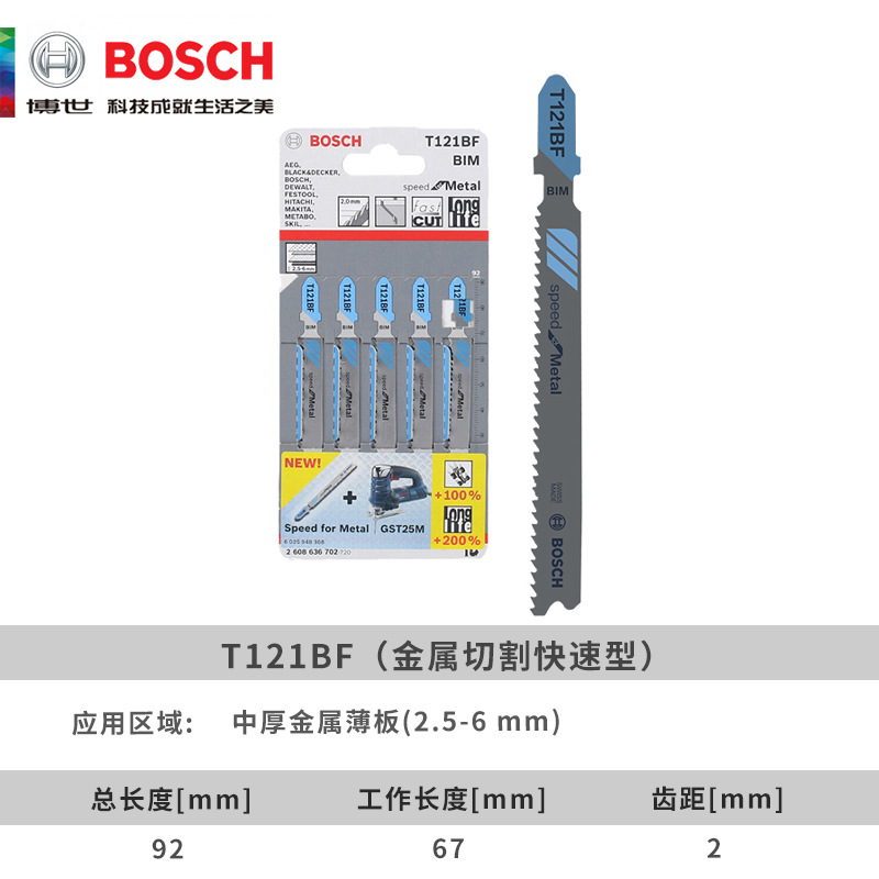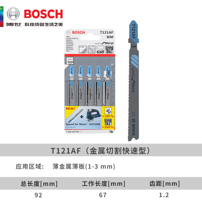 Толщина полотна лобзика Bosch прямое возвратно-поступательное пильное полотно металл/алюминий/нержавеющая сталь гребень для быстрой резки