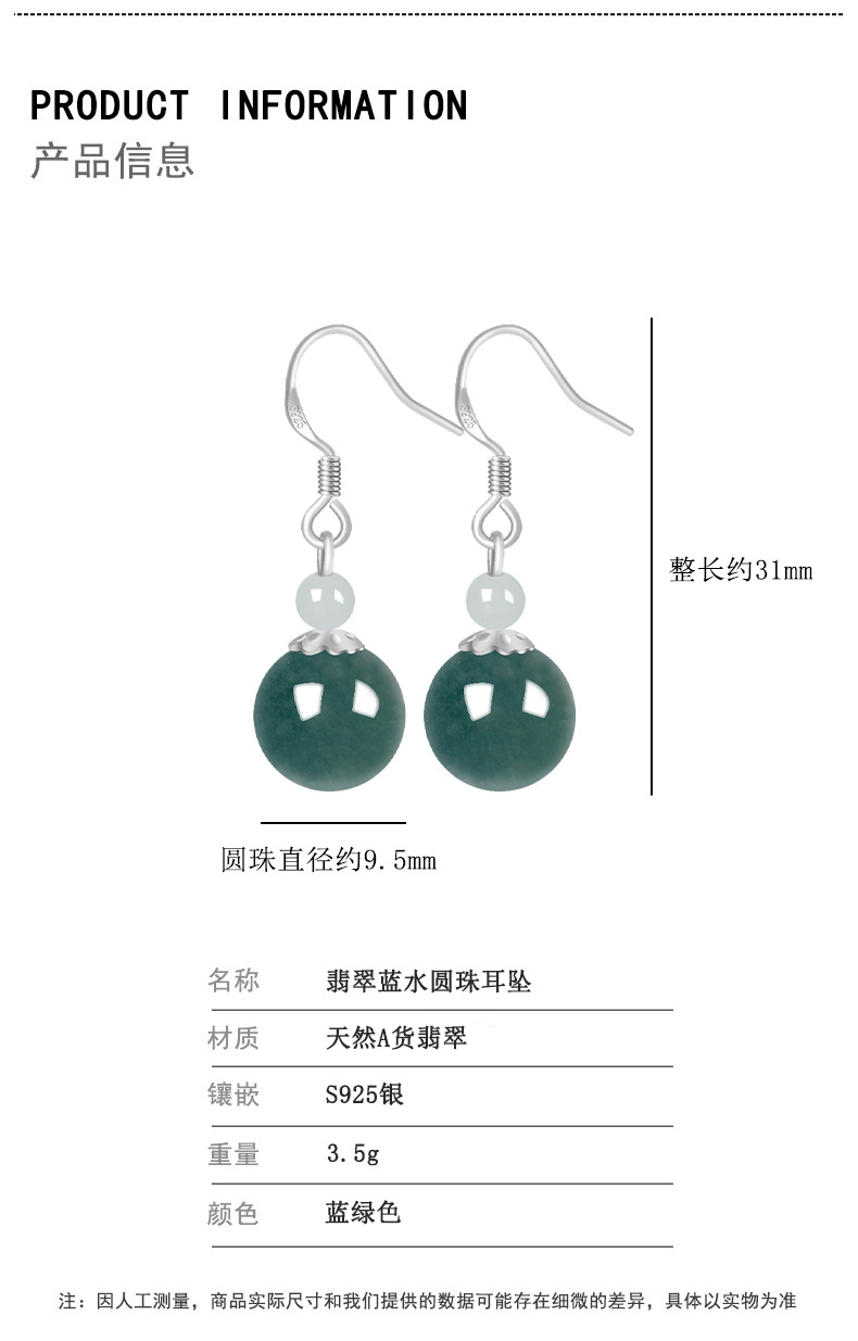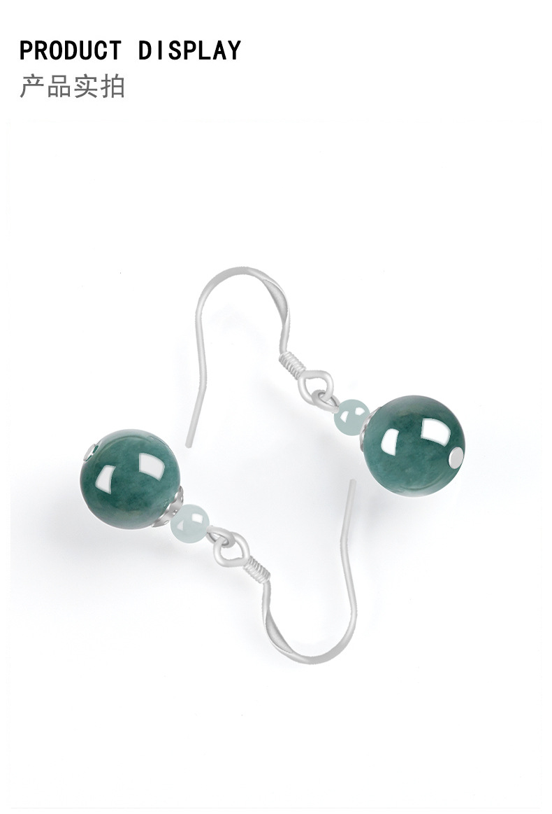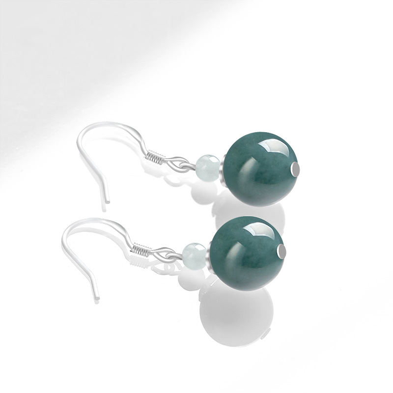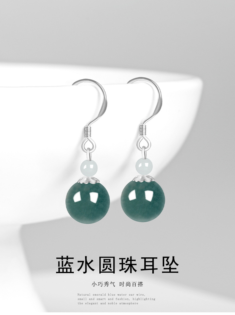Высококачественный S925 инкрустированный серебром натуральный товар Нефрит Голубая вода серьги с круглыми бусинами ледяной нефрит камень Модные женские серьги