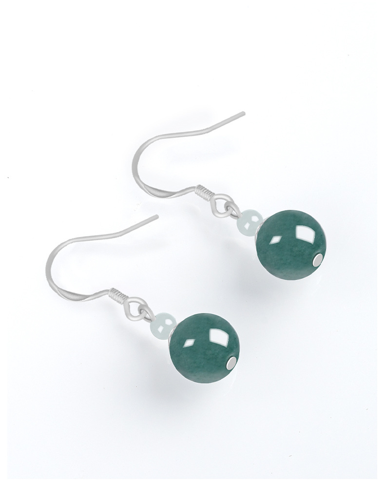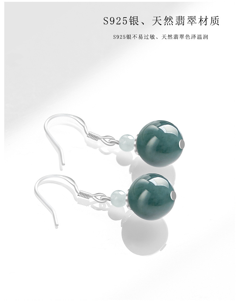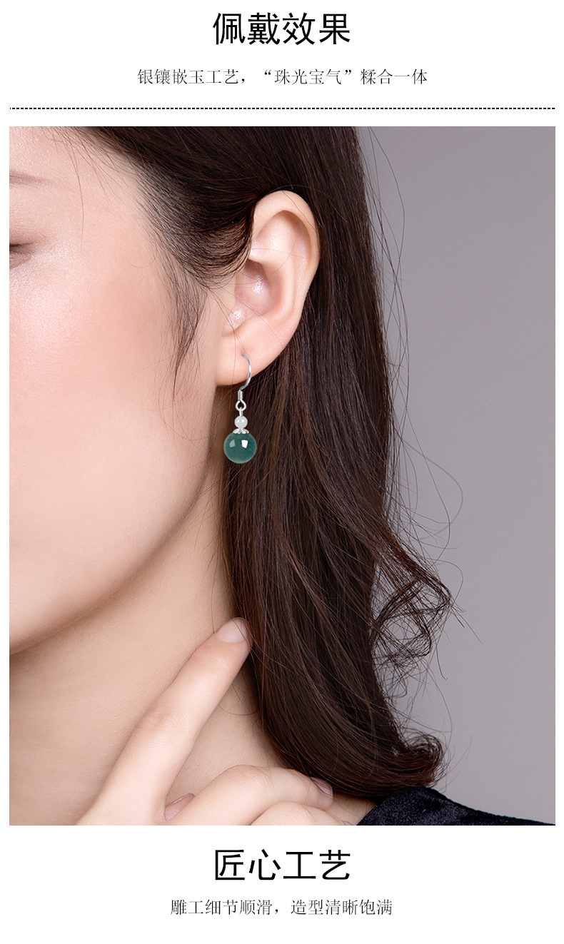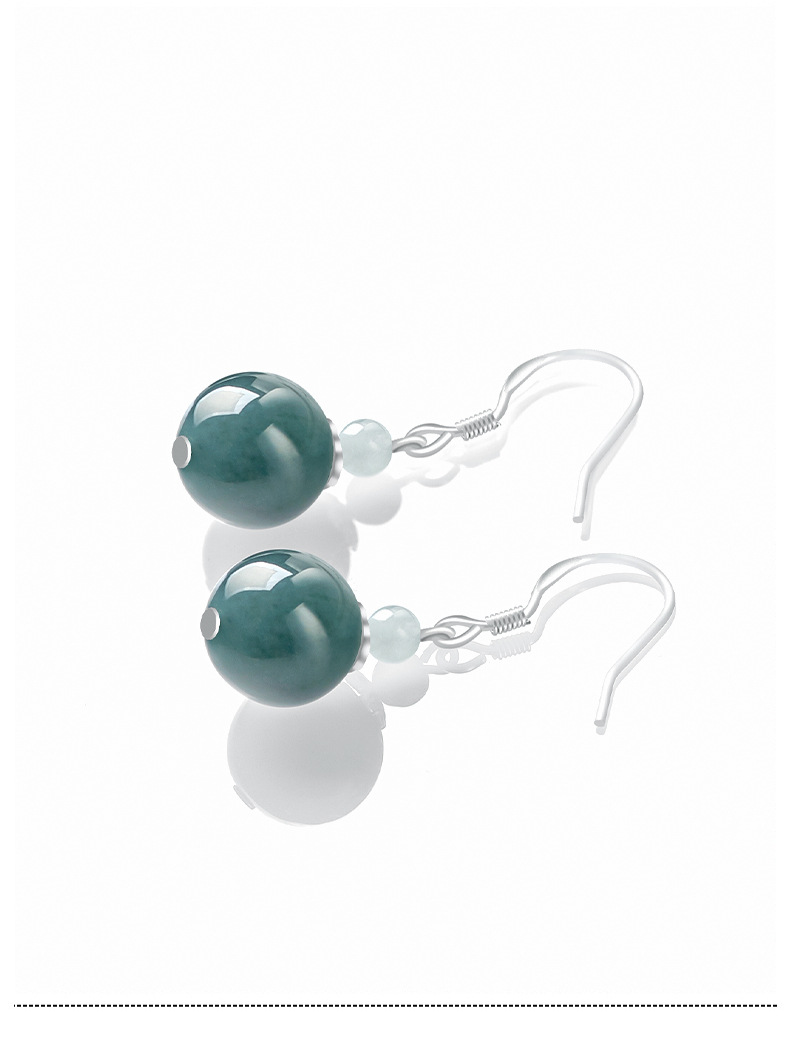 Высококачественный S925 инкрустированный серебром натуральный товар Нефрит Голубая вода серьги с круглыми бусинами ледяной нефрит камень Модные женские серьги