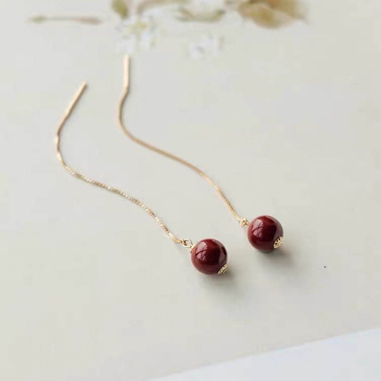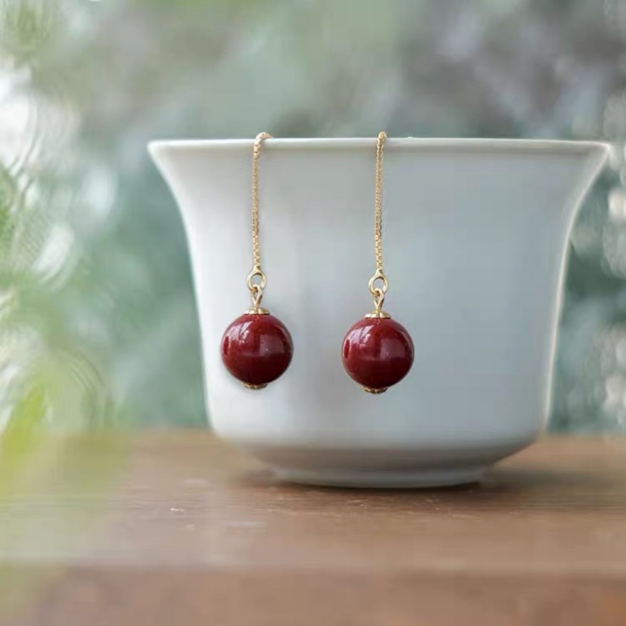 Серьги из красной киновари женские фиолетовые Золотые круглые бусины с песком новые китайские серьги с медным покрытием 14K золотые серьги праздничные Винтажные серьги