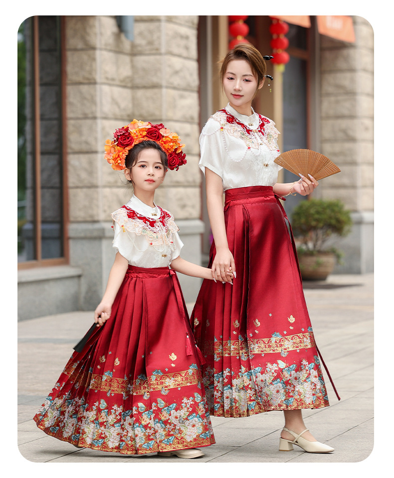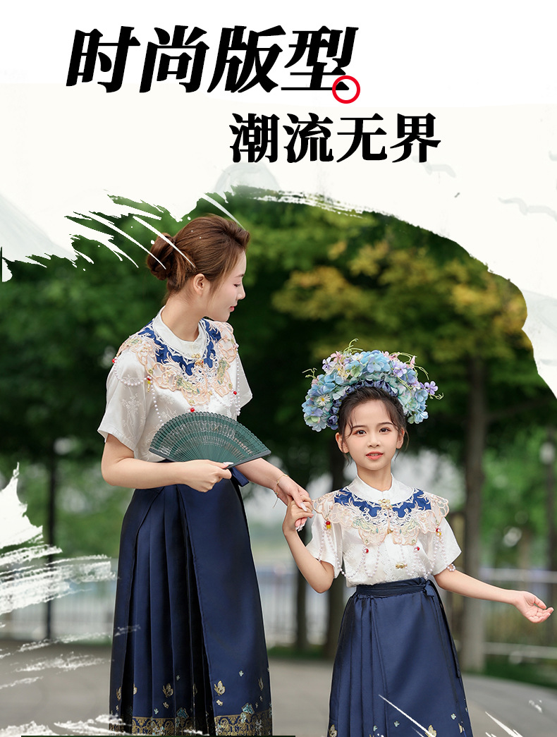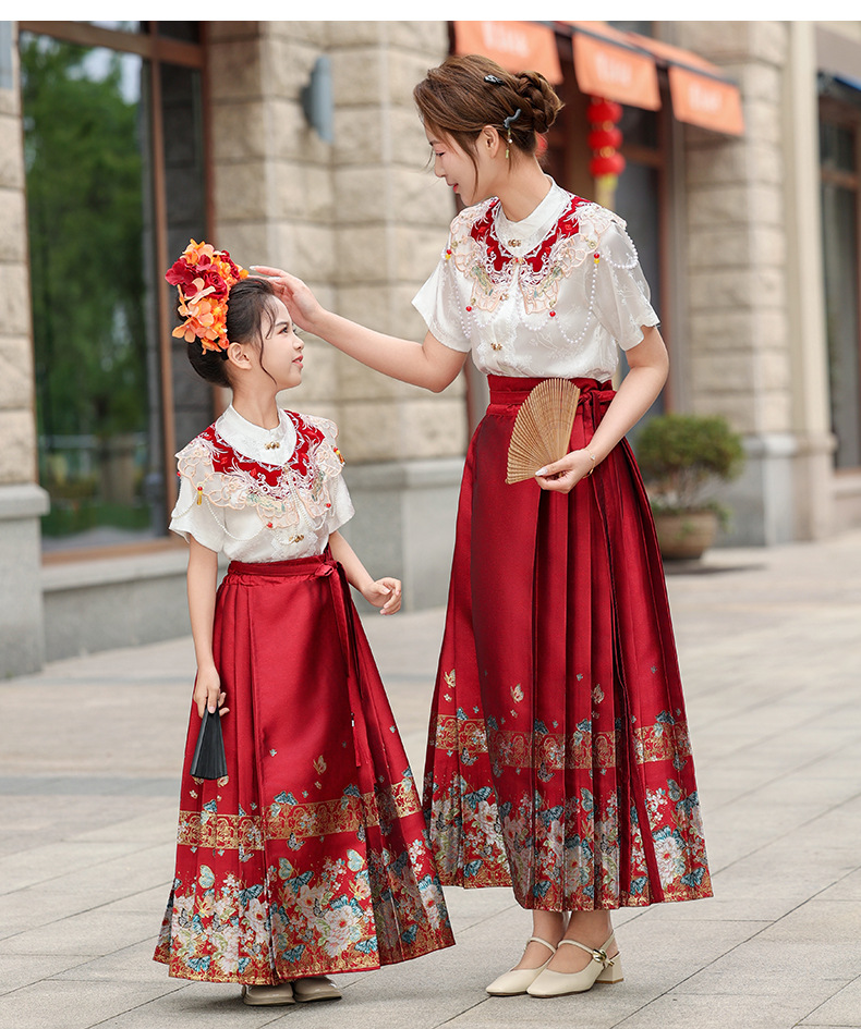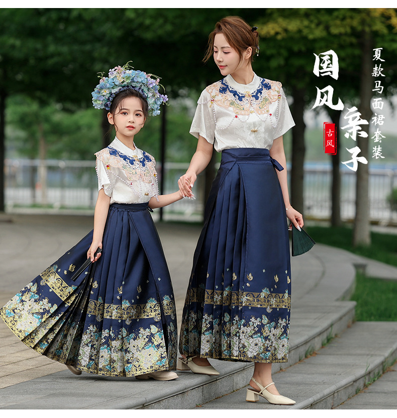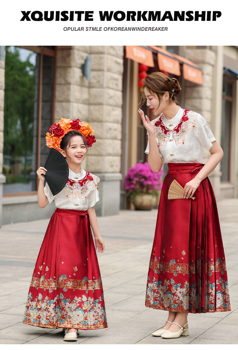 Летний комплект юбок для девочек 2025: новая коллекция, стильные наряды для мамы и дочки в китайском стиле, модный детский костюм Тан.