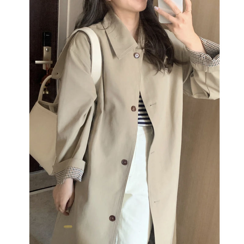 Женская ветровка ранней осени 2024, новая весенне-осенняя модель цвета хаки, короткая, в корейском и британском стиле, средней длины