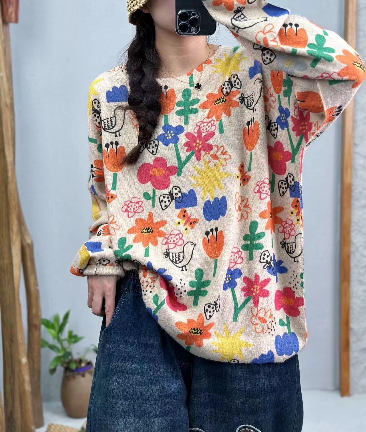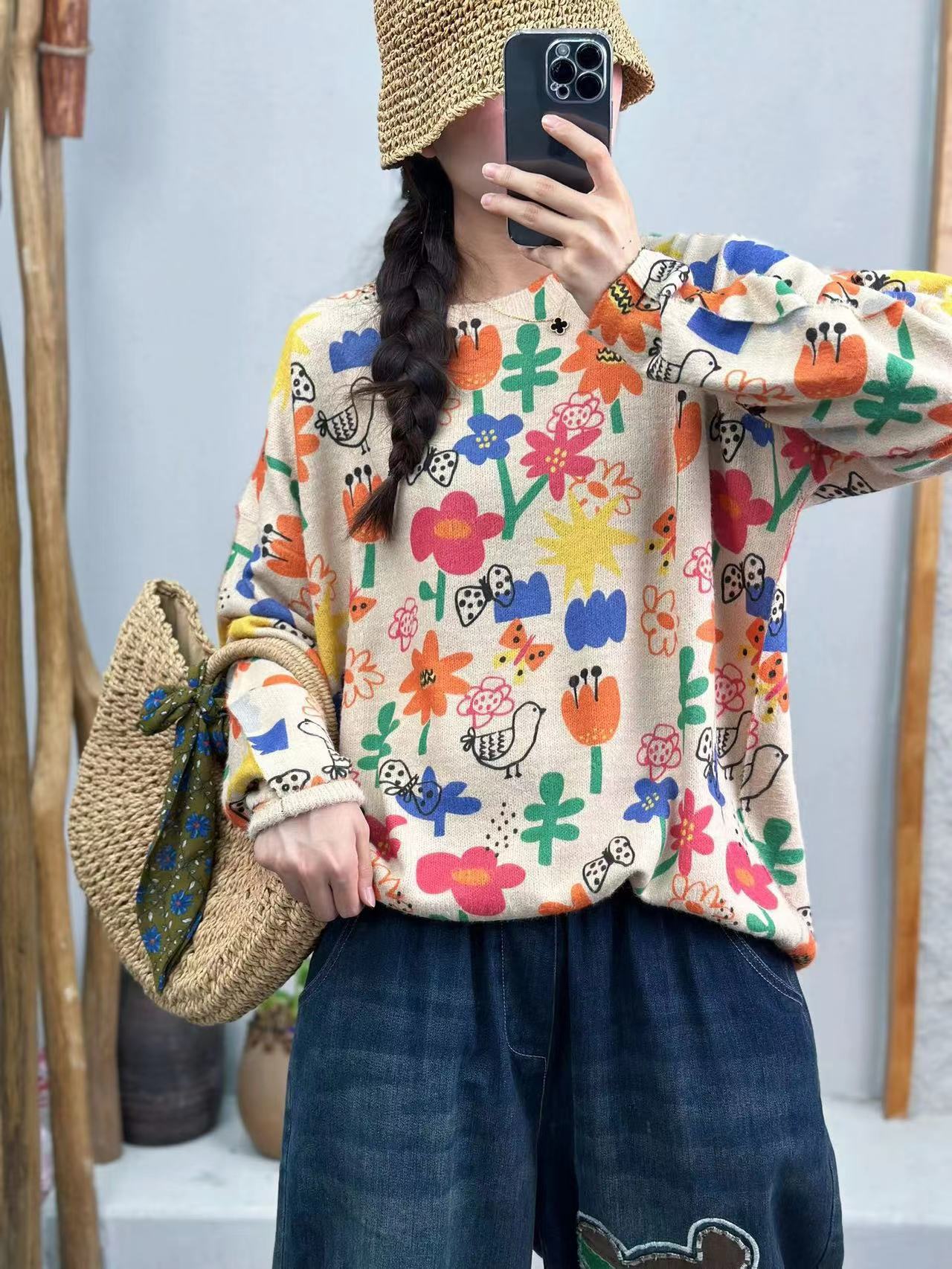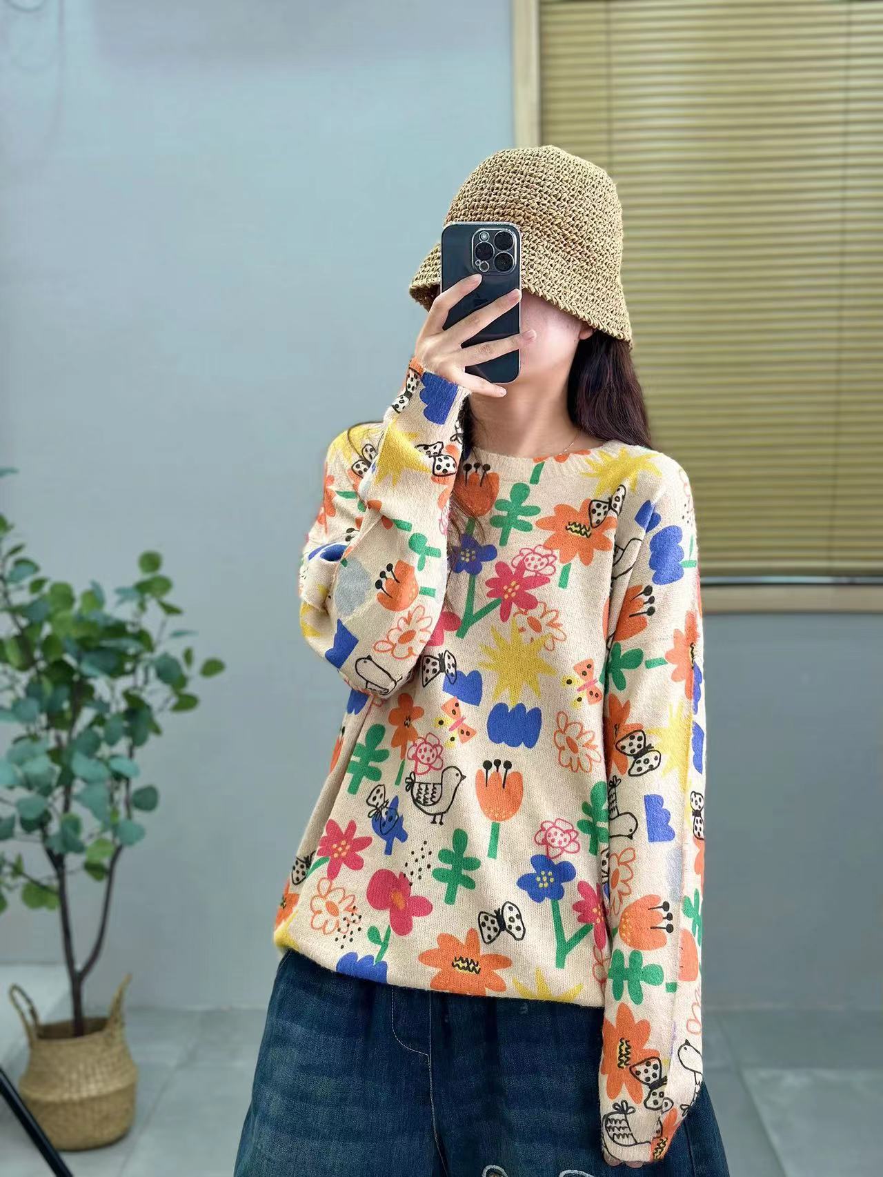 Женский свитер с принтом, пуловер, новинка осени 2025, корейский стиль, высококачественный женский топ с круглым вырезом, теплый, из вельвета под норку, оптом.