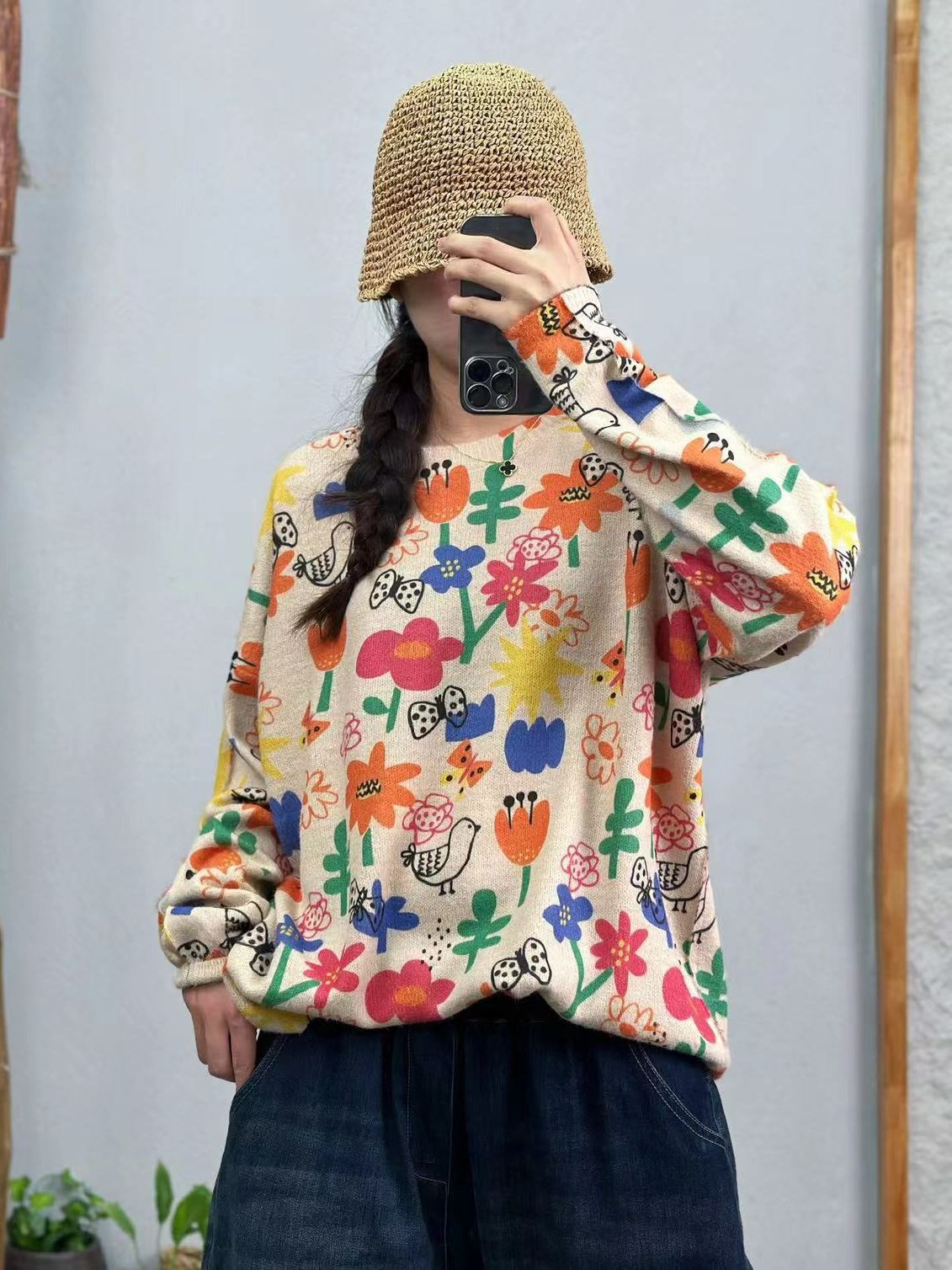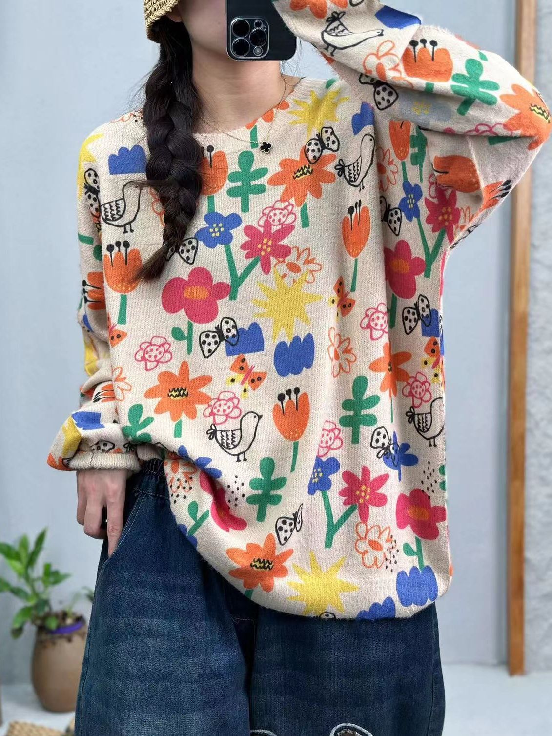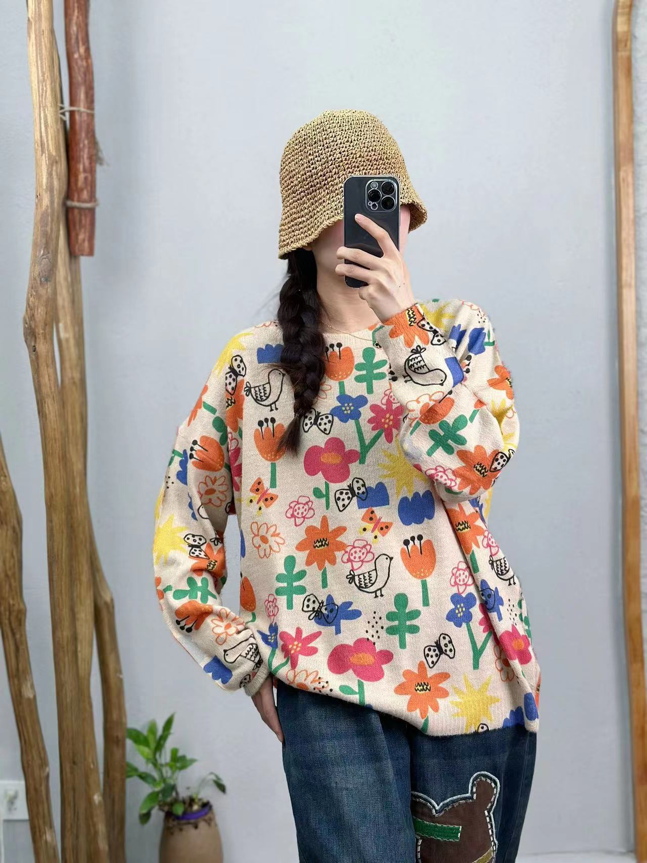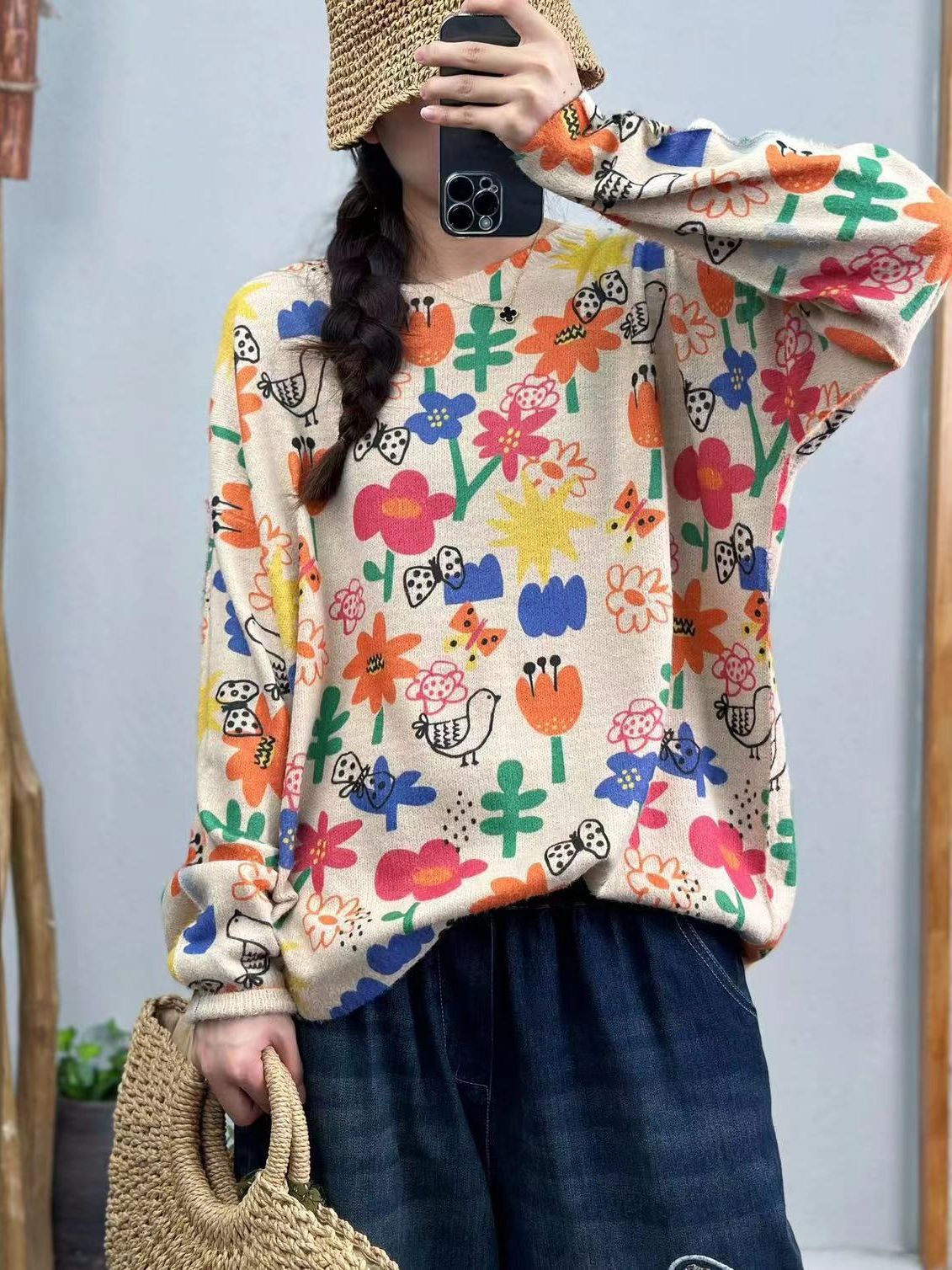 Женский свитер с принтом, пуловер, новинка осени 2025, корейский стиль, высококачественный женский топ с круглым вырезом, теплый, из вельвета под норку, оптом.