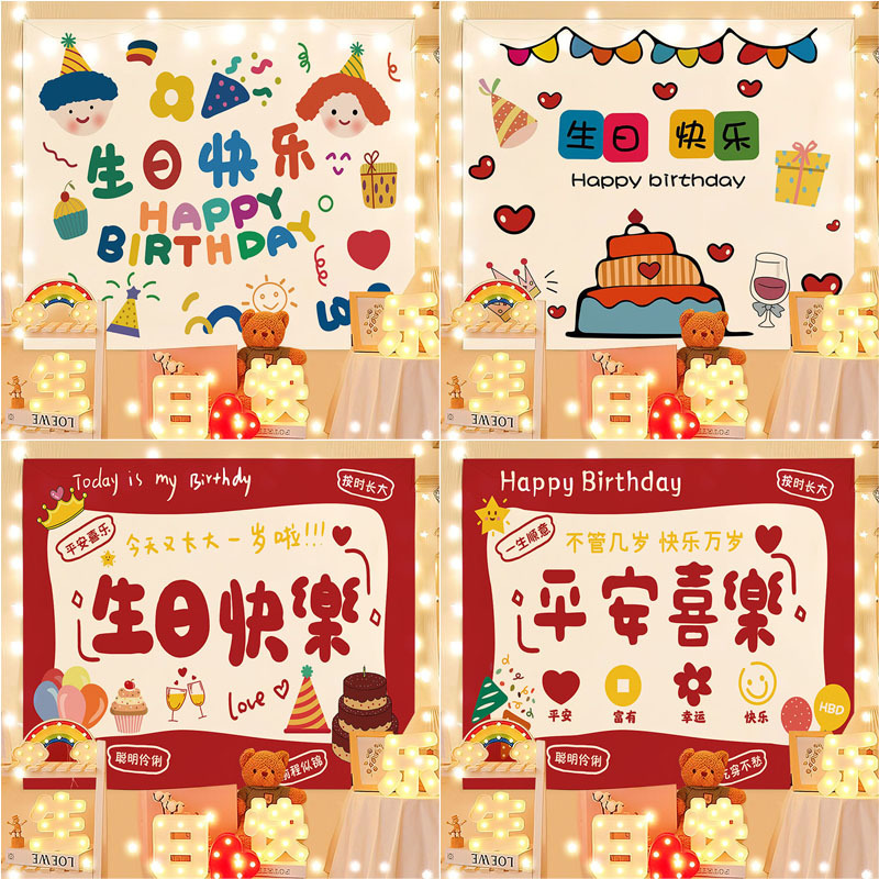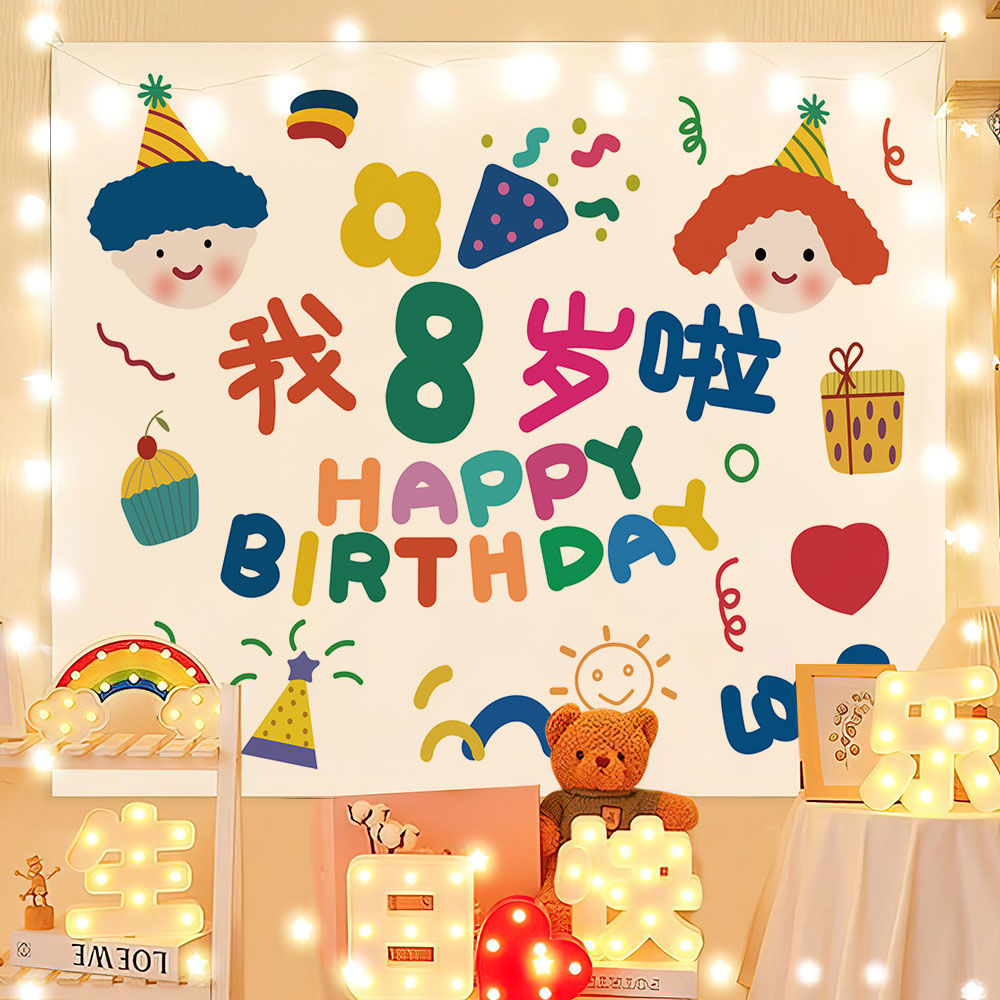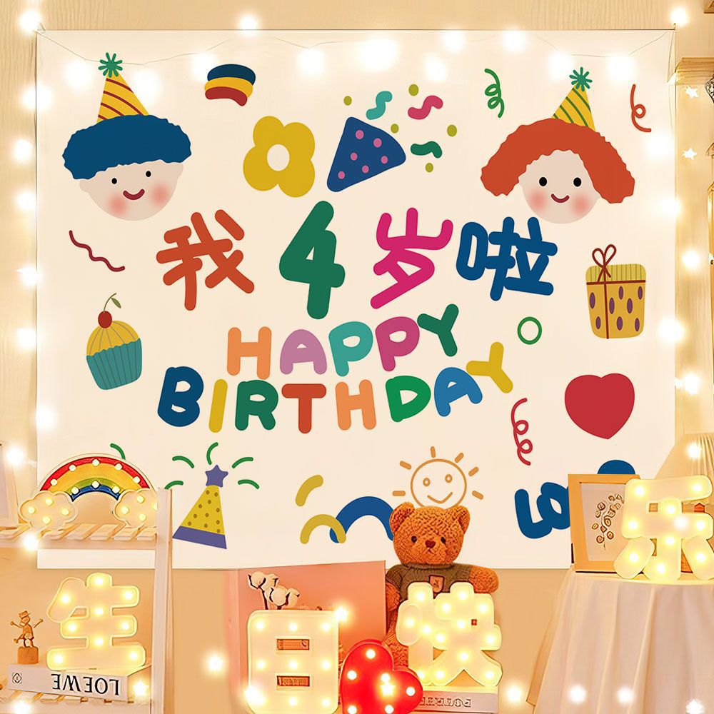 INS стиль День рождения фон ткань Интернет знаменитости фото гобелен дети мальчики и девочки день рождения ребенок украшение Спальня Висит ткань Вечерние