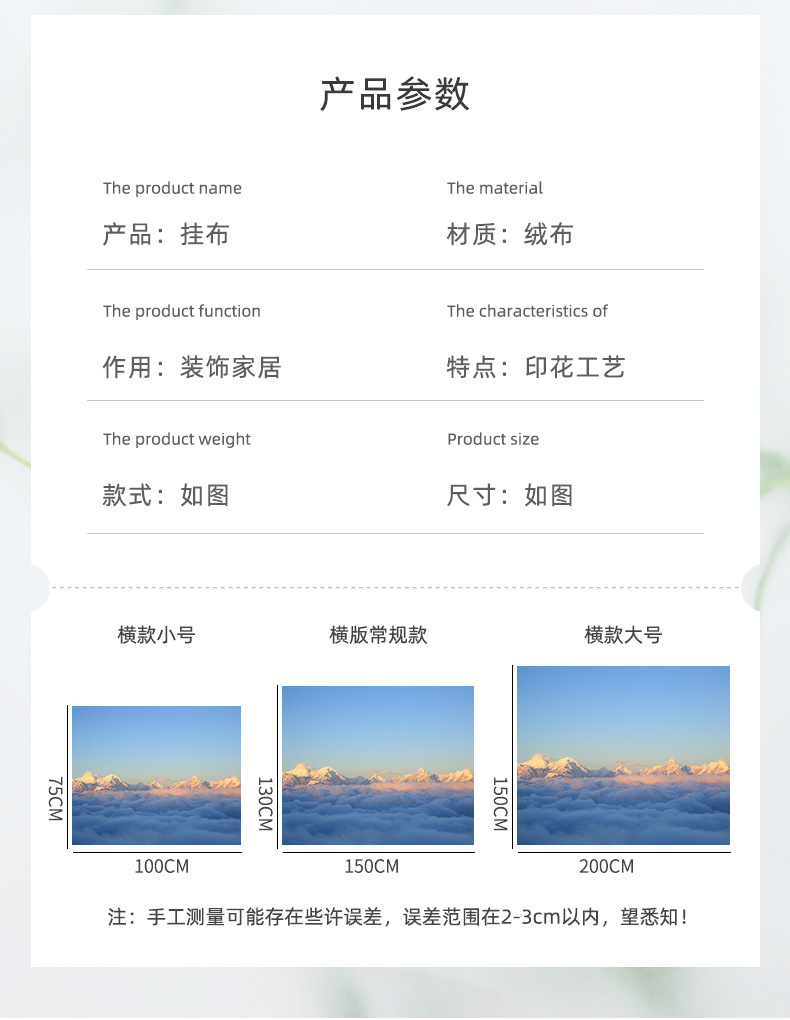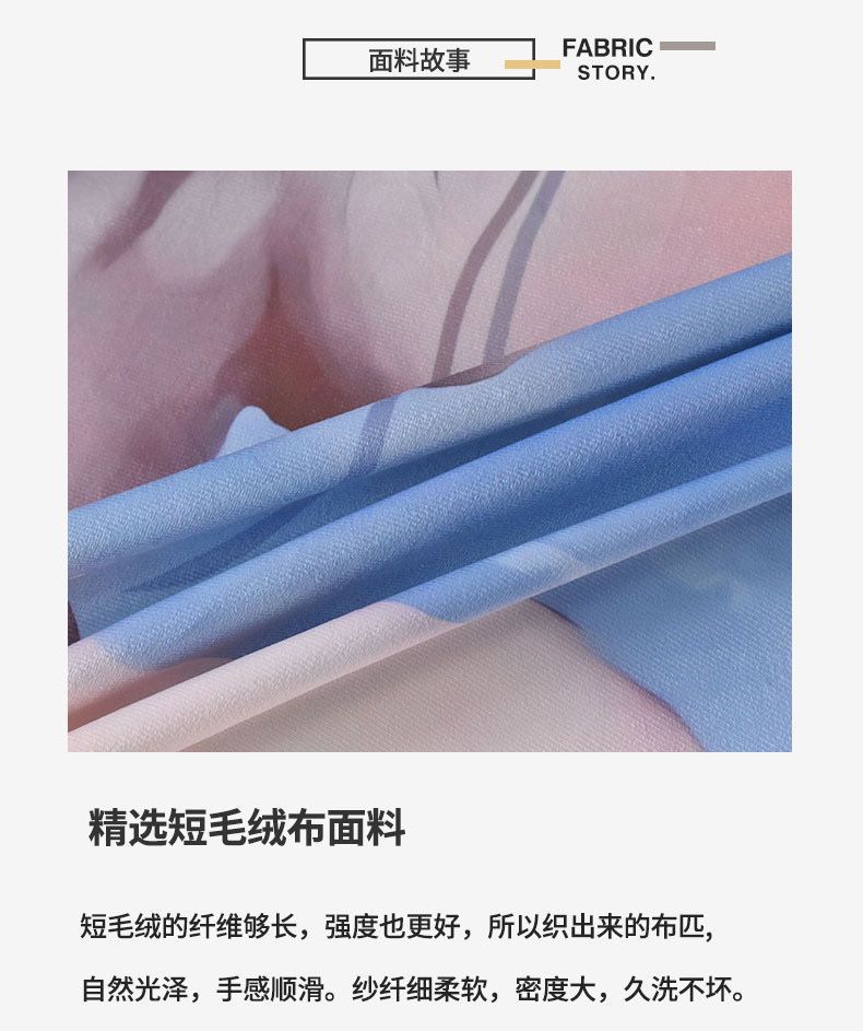 本店采用绒布手感舒适,垂感强度高,不易飘起,重量稍重,印刷层次感强,印刷效果好,适合淘宝、拼多多商家选用。均可提供OPP袋独立包装