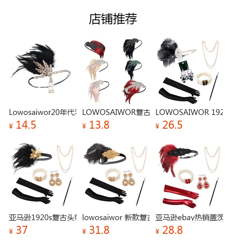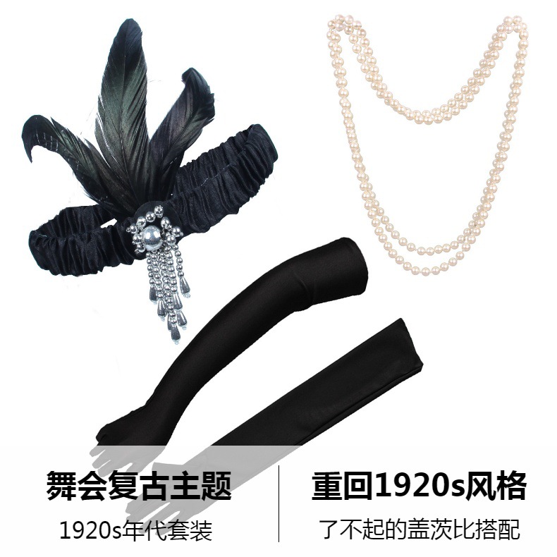 LOWOSAIWOR GATSBY HEADBAND羽毛头饰套装 1920S舞会套装头带