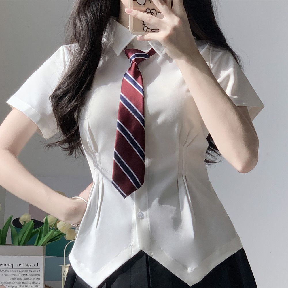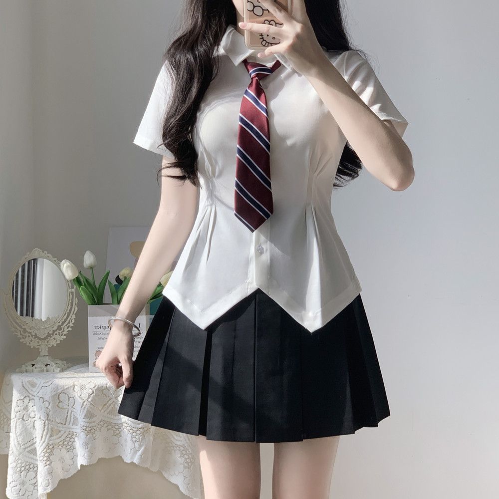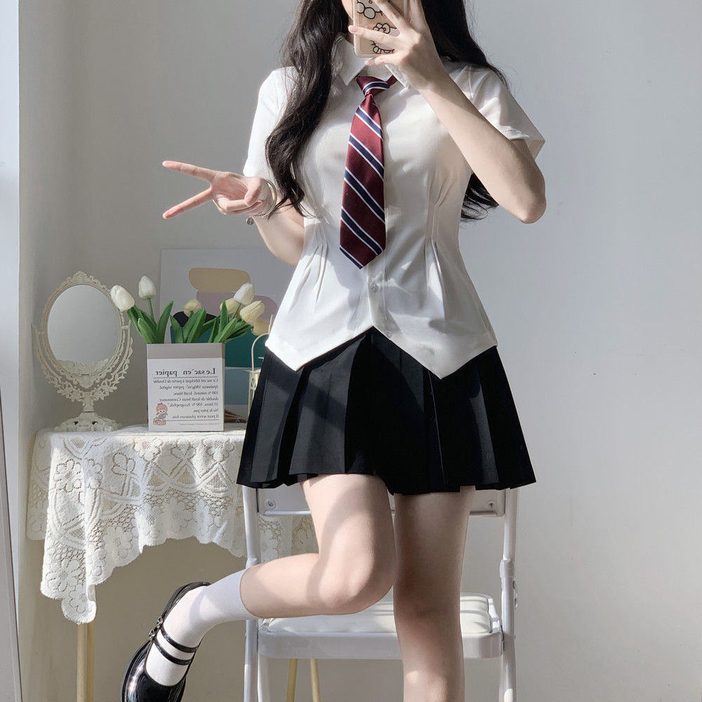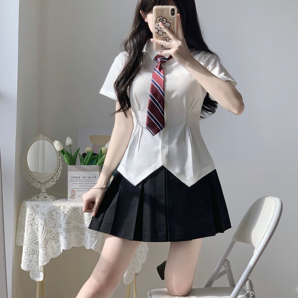 В наличии Оптовая Талия JK рубашка Женская горячая девушка чистое желание коробка плиссированная юбка костюм в студенческом стиле белая рубашка с короткими рукавами лето