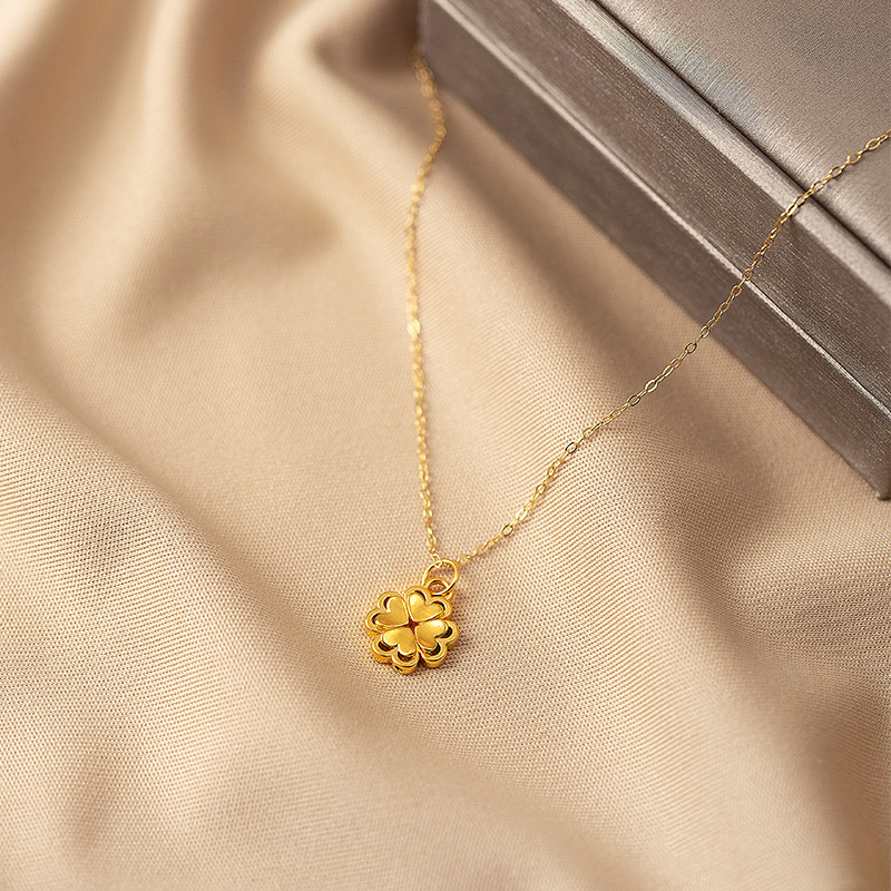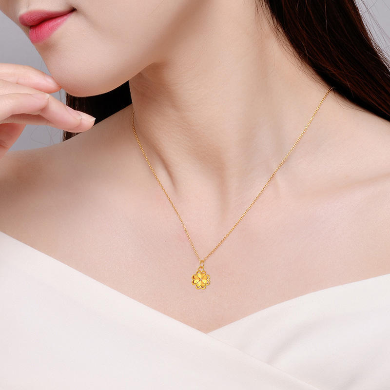 Qianxin ювелирные изделия золото 999 Золото Lucky четырехлистный клевер кулон женский 3D ТВЕРДОЕ ЗОЛОТО чистое золото любовь цветок ключица O-цепочка