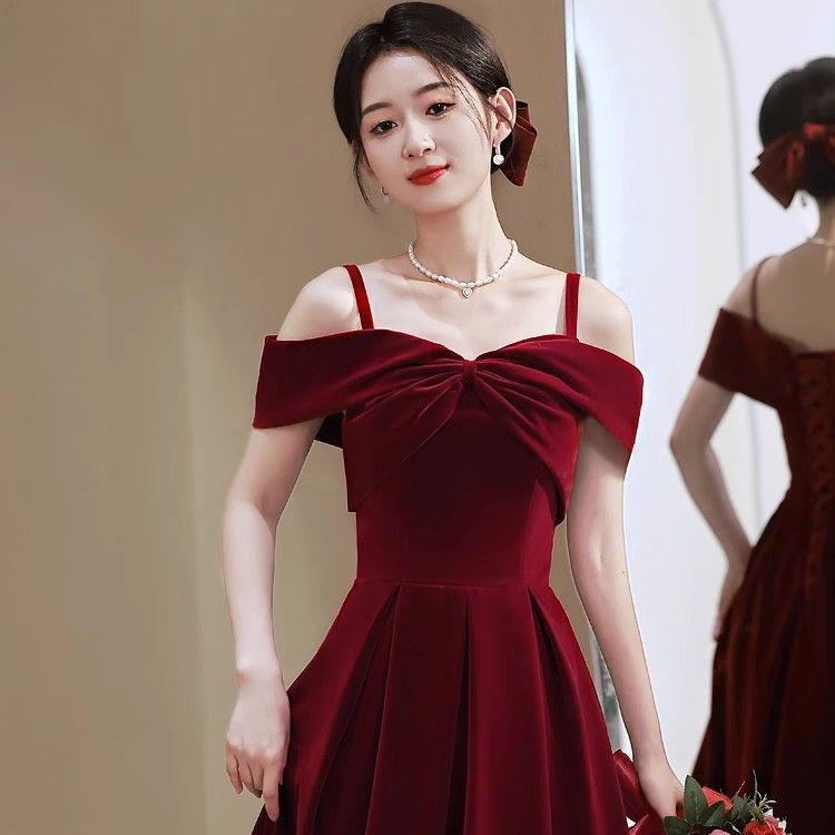Красный тост, новинка 2025, маленькое обручальное платье для невесты, элитное вечернее платье с задней дверью, женский банкет