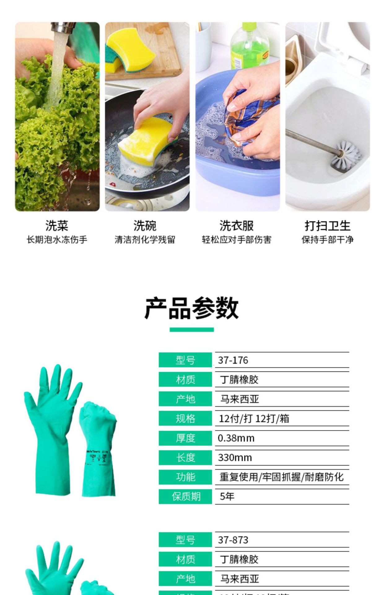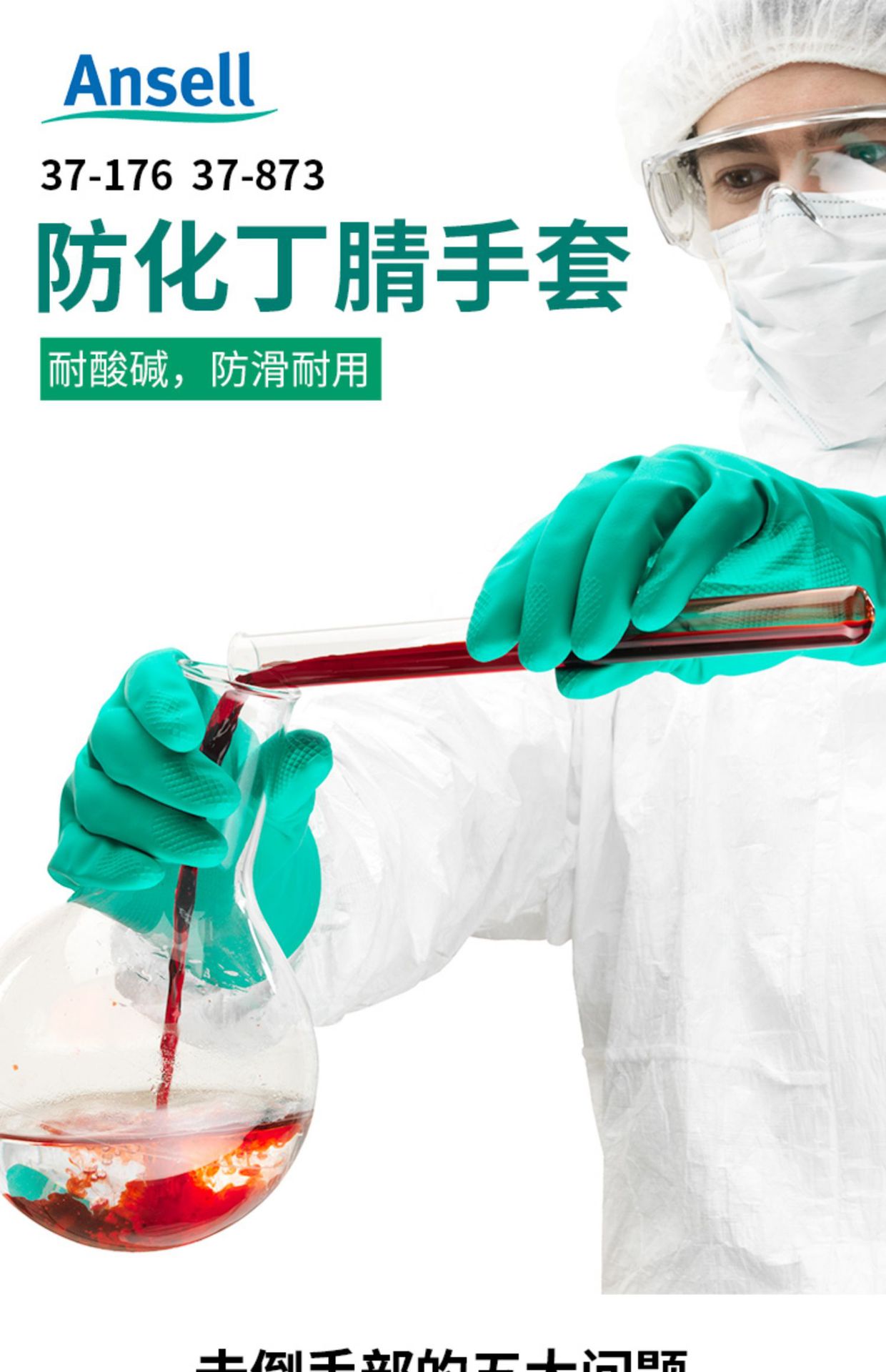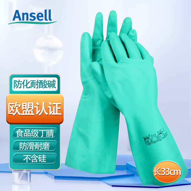 Ansel 37-176 Нитриловые перчатки на флисовой подкладке, устойчивые к кислотам и щелочам, чистка кухни, промышленная охрана труда, резиновые защитные перчатки