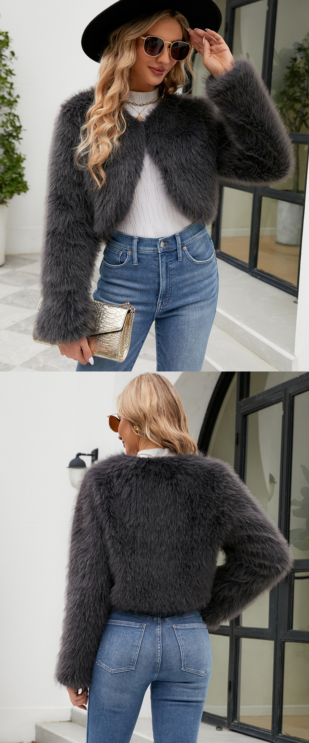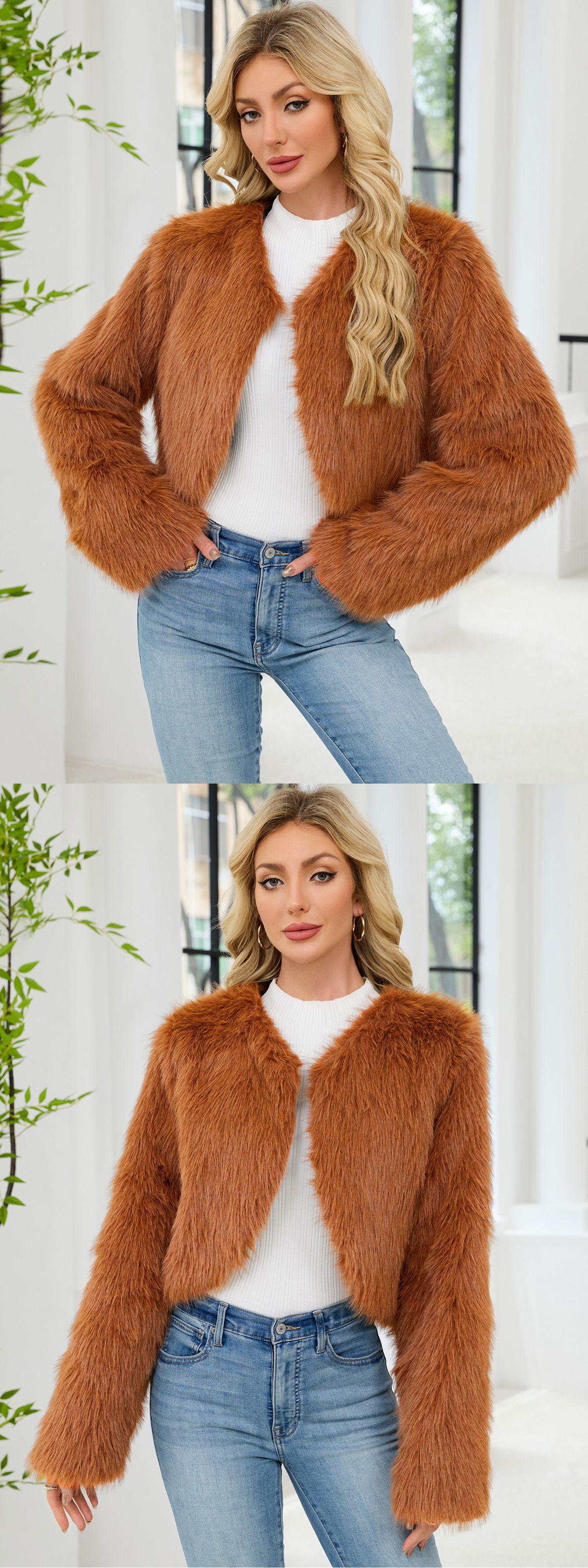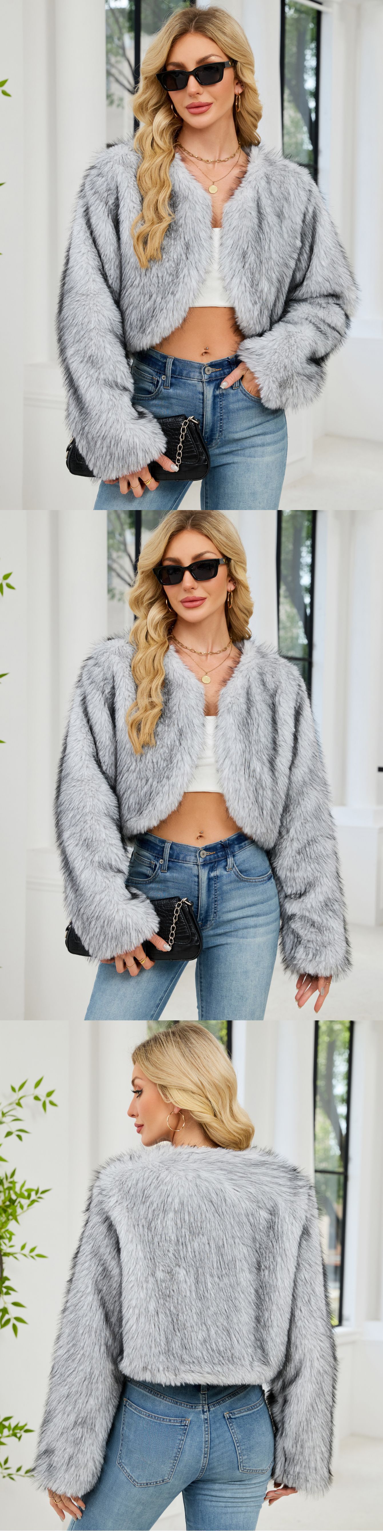 F0588 Европейский и американский трансграничный 2023 Модный повседневный женский топ из искусственного меха, женское короткое пальто с мехом Cheng Juan