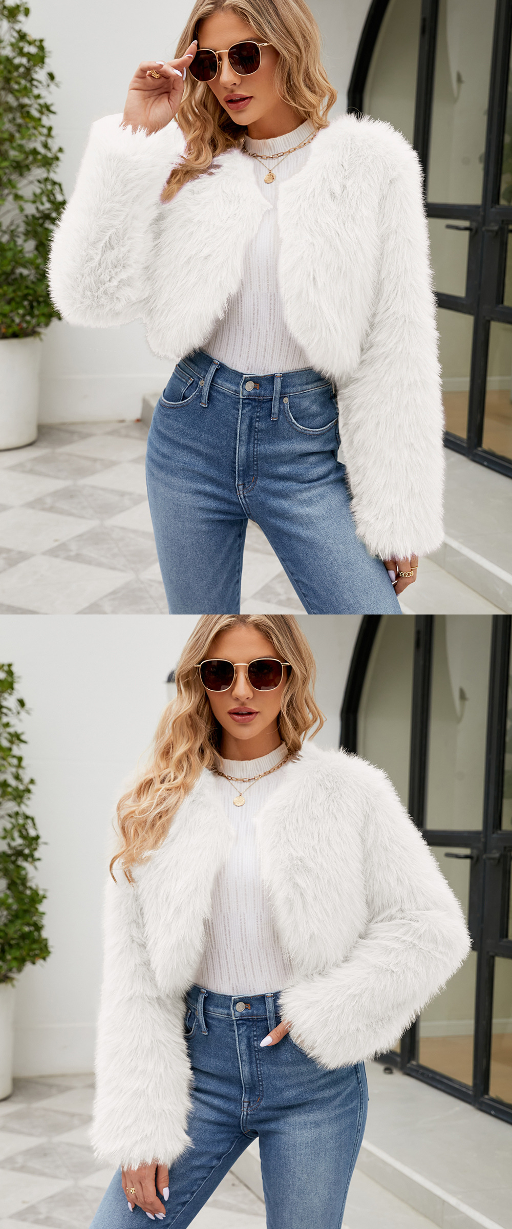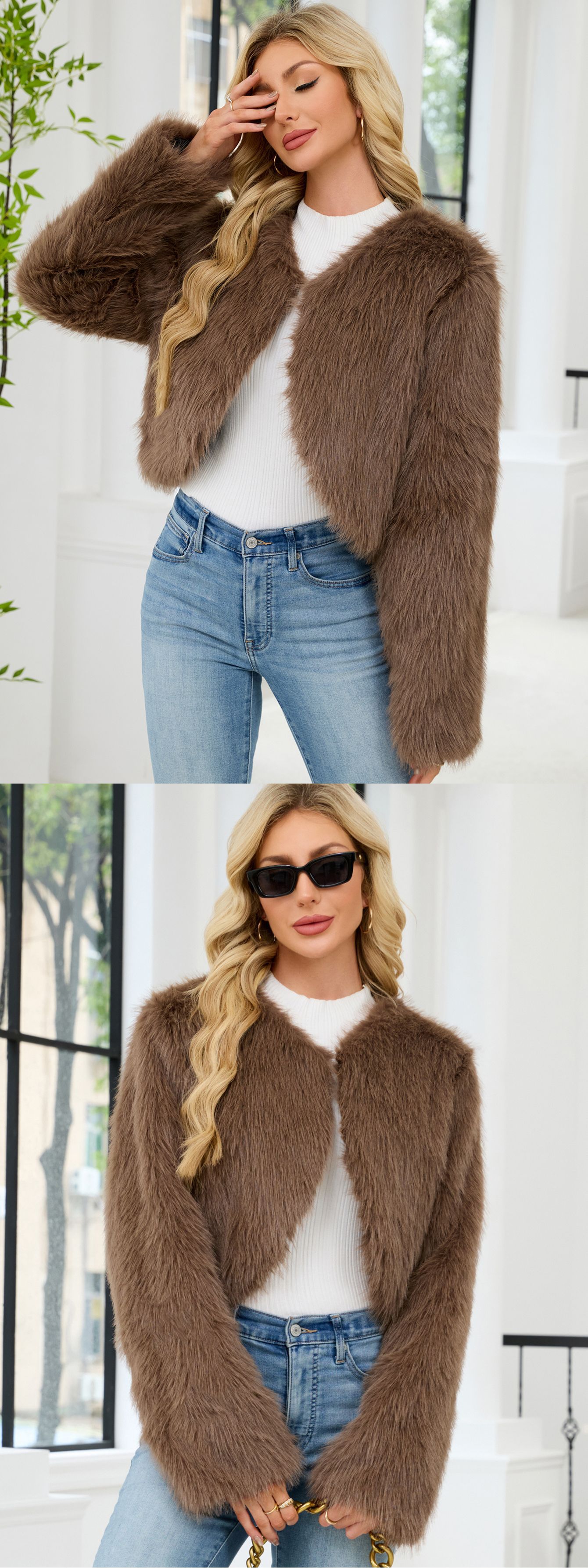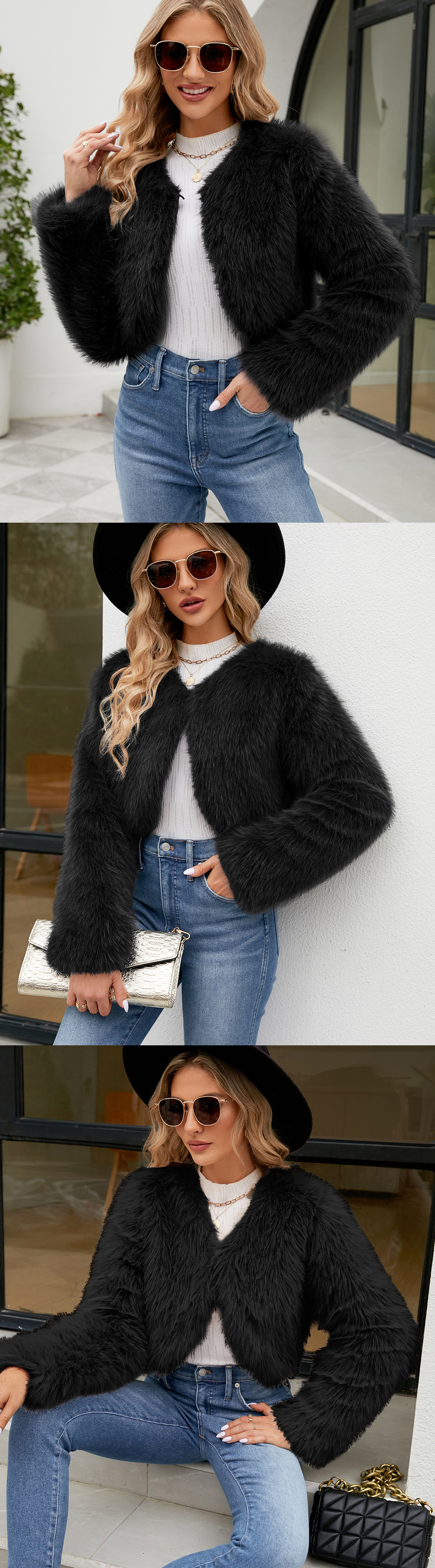 F0588 Европейский и американский трансграничный 2023 Модный повседневный женский топ из искусственного меха, женское короткое пальто с мехом Cheng Juan