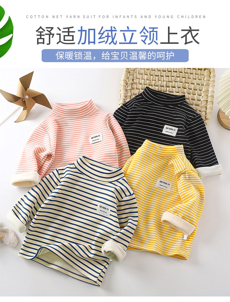 Фабричный Зимний новый детский теплый топ с внутренней полоской для маленьких мальчиков и девочек, утолщенный, детская одежда в Корейском стиле с флисовой подкладкой