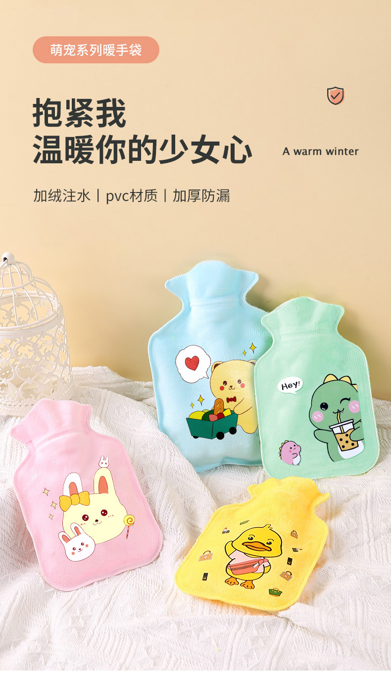 Сумка для горячей воды Теплая сумка с наполнением водой, мультяшная милая плюшевая теплая детская маленькая портативная грелка для рук с принтом воды