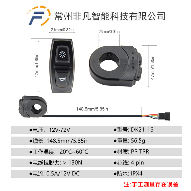 自行车锂电改装配件二合一DK21-1S开关山地车滑板车喇叭大灯开关