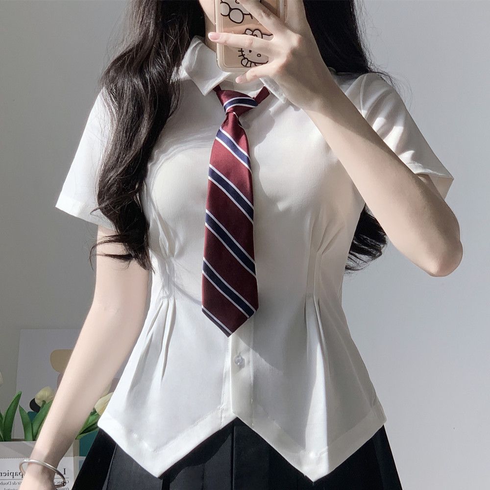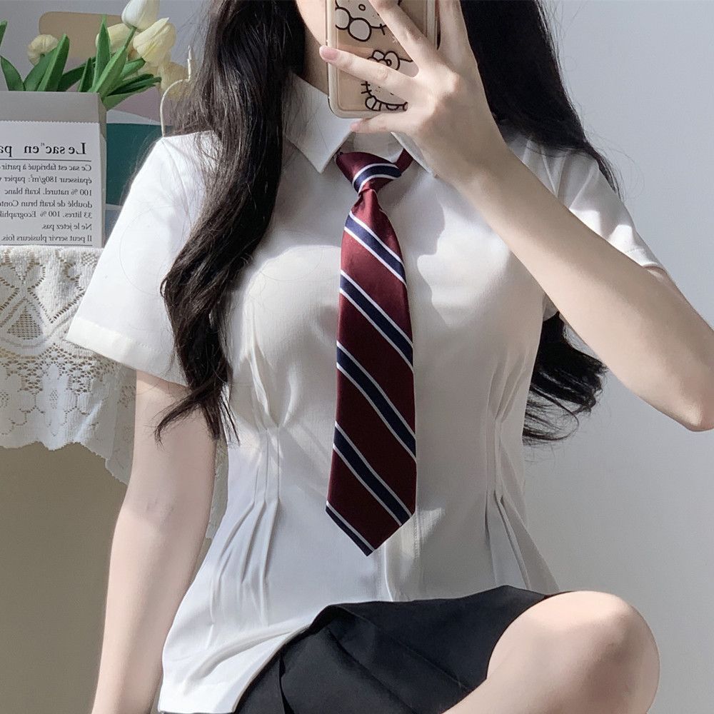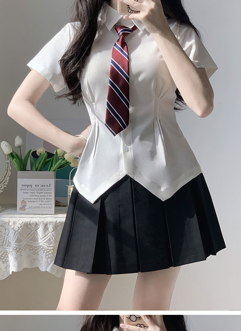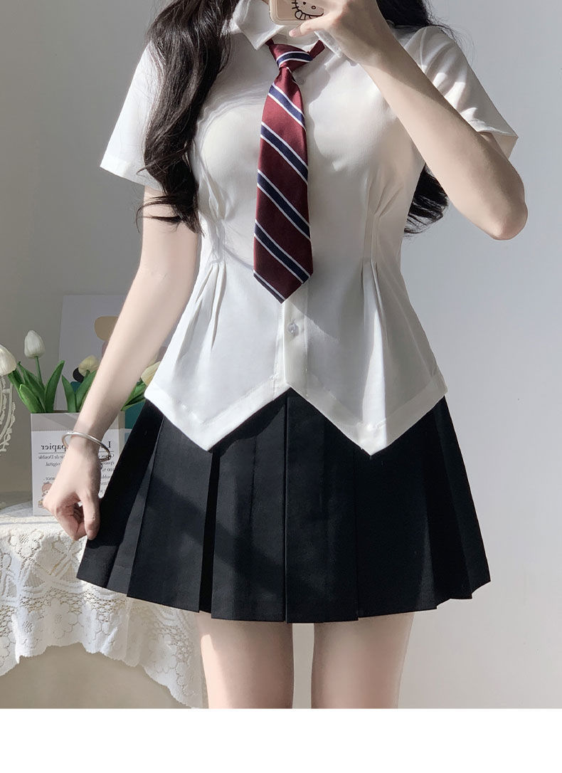 В наличии Оптовая Талия JK рубашка Женская горячая девушка Чистая плиссированная юбка костюм в стиле колледжа белая рубашка с коротким рукавом лето