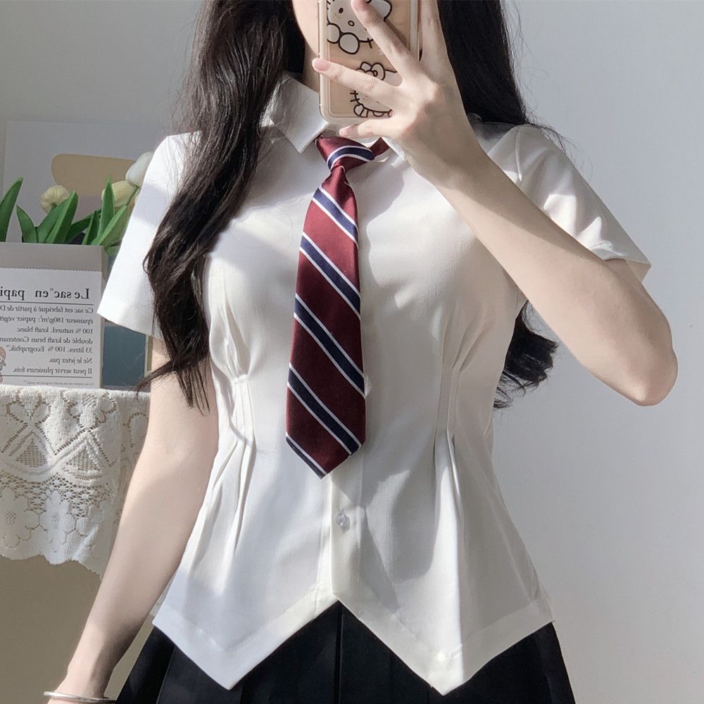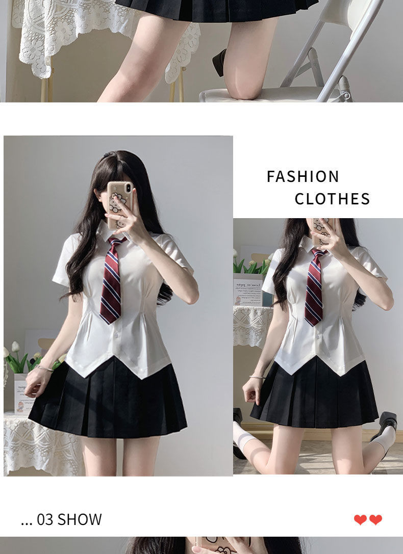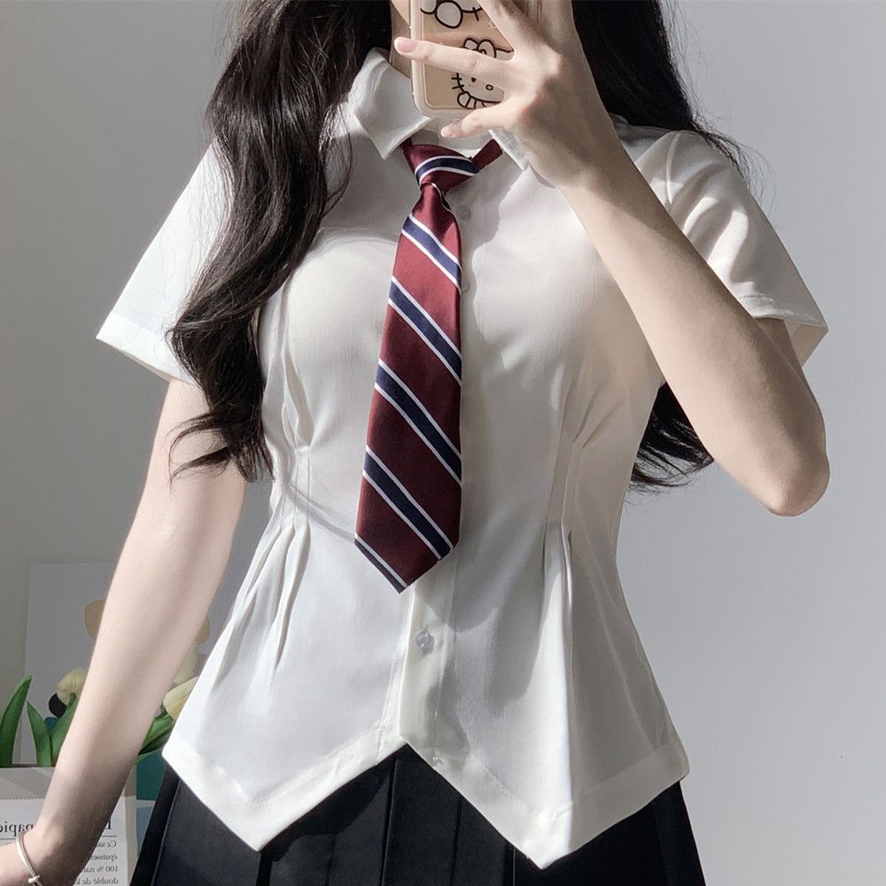 В наличии Оптовая Талия JK рубашка Женская горячая девушка Чистая плиссированная юбка костюм в стиле колледжа белая рубашка с коротким рукавом лето