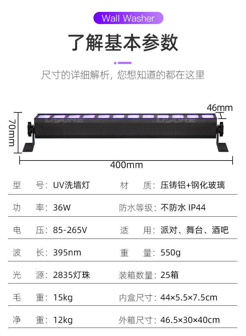 Амазонка УФ фиолетовый светодиодный настенный светильник 36 Вт КТВ этап Черный эффект световая полоса флуоресцентный атмосферный линейный свет