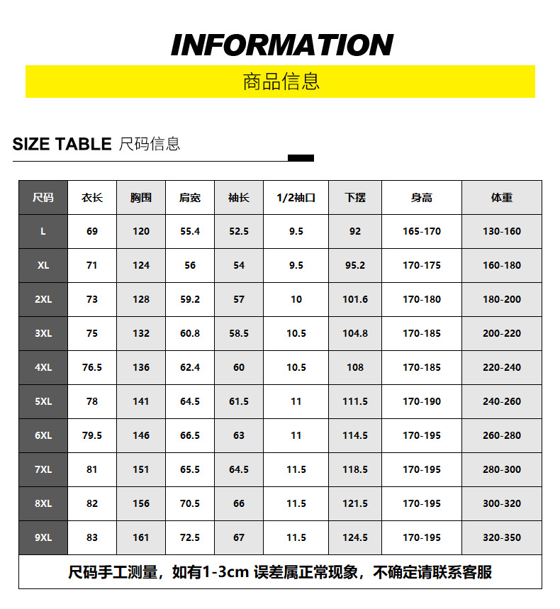 L; XL; 2XL; 3XL; 4XL; 5XL; 6XL; 7XL; 8XL; 9XL