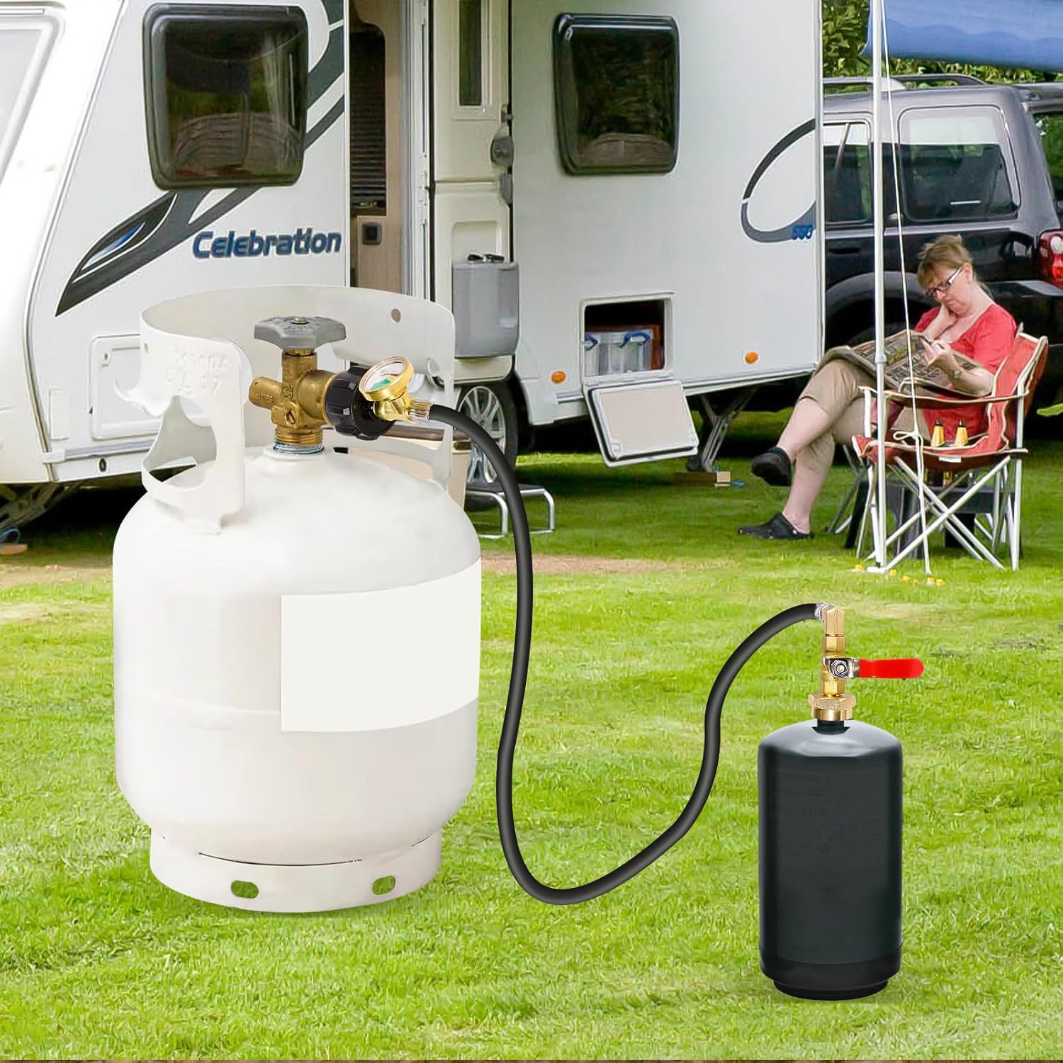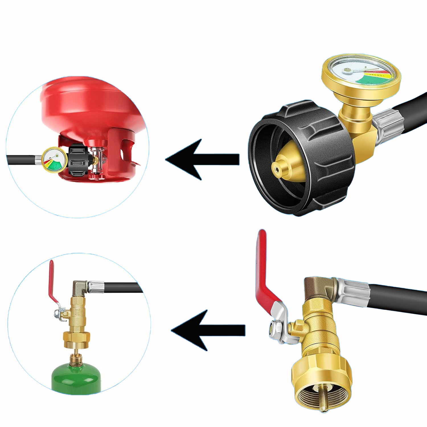 Североамериканская головка преобразования газового баллона для подключения интерфейса QCC от 20 фунтов до одного фунта с измерительной газовой трубой из ПВХ Североамериканская газовая труба