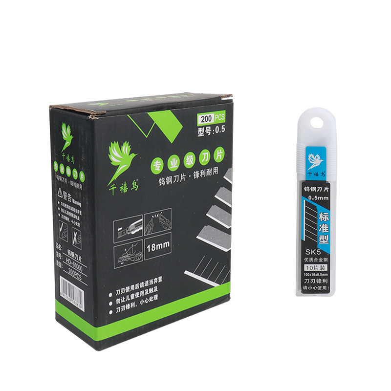 Средний белый лист 18 мм в штучной упаковке 0,4 толщиной; Средний белый лист 18 мм в штучной упаковке 0,5 толщиной; Средний белый лист 18 мм коробка толщиной 0,6; Средний sk5 черный лист 18mm коробка толщиной 0,5; Средний sk5 черный лист 18mm коробка толщиной 0.6; Маленький белый лист 9MM 60 угол в штучной упаковке толщиной 0,4; Маленький белый лист 9MM 30 угол в штучной упаковке 0,4 толщиной; Точный черный лист 9MM 60 угол в штучной упаковке толщиной 0,4; Точный черный лист 9MM 30 угол в штучной упаковке толщиной 0,4; Большой белый лист 25 мм в штучной упаковке 0.7 толщиной; Чистящие лезвия 18 мм в штучной упаковке 0,4 толщиной; Лезвия трапеции 19 мм в штучной упаковке 0,5 толщиной; Канцелярские лезвия ширина 9 мм длина 35 мм 0,4 толщиной; Канцелярские лезвия ширина 9 мм длина 50 мм 0,4 толщиной