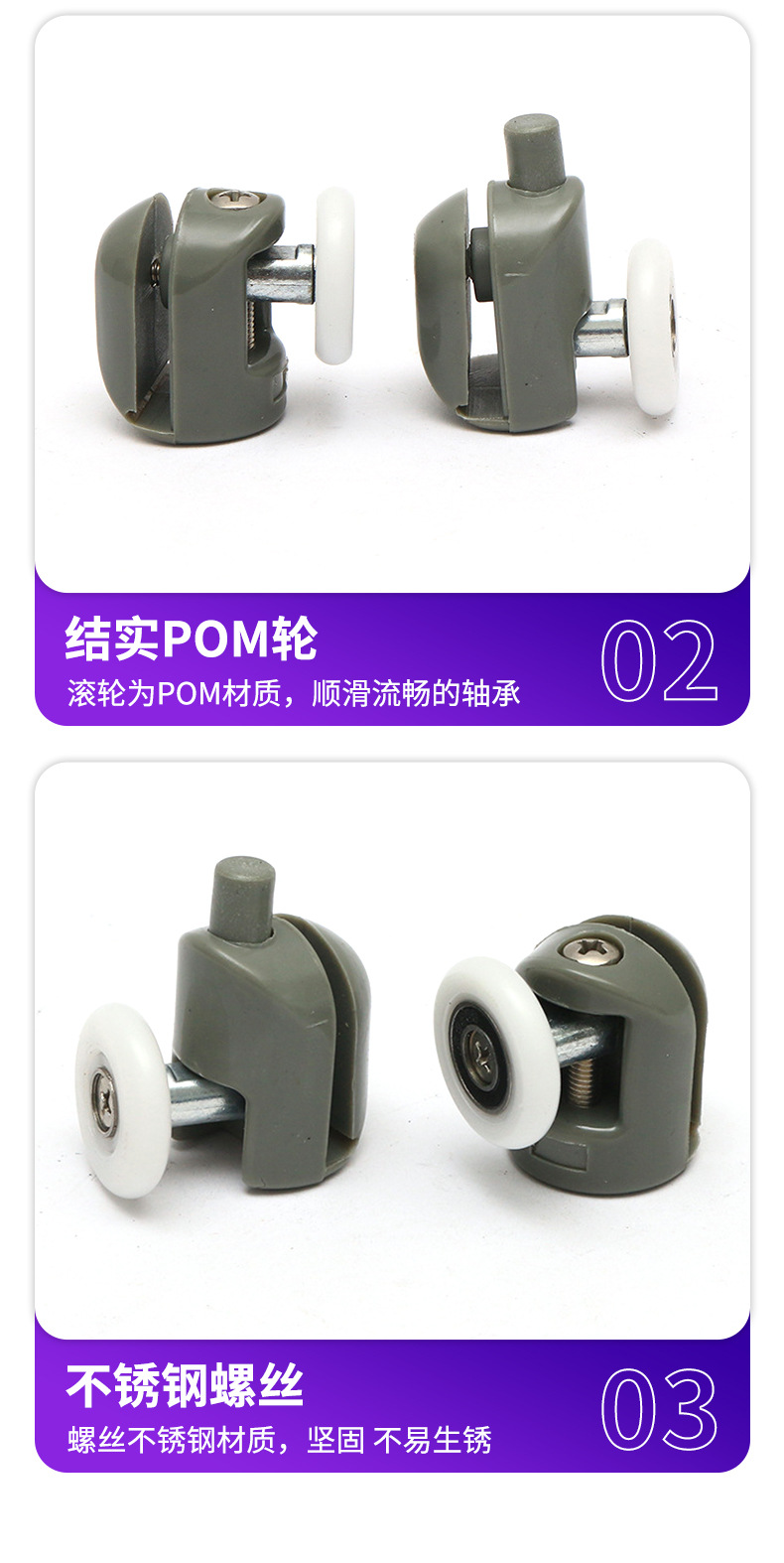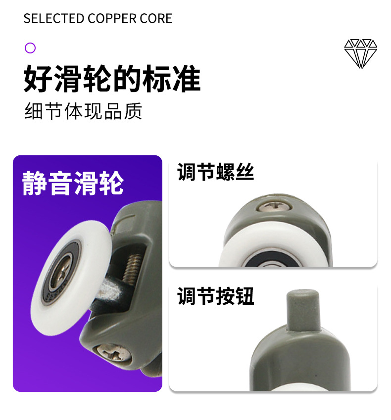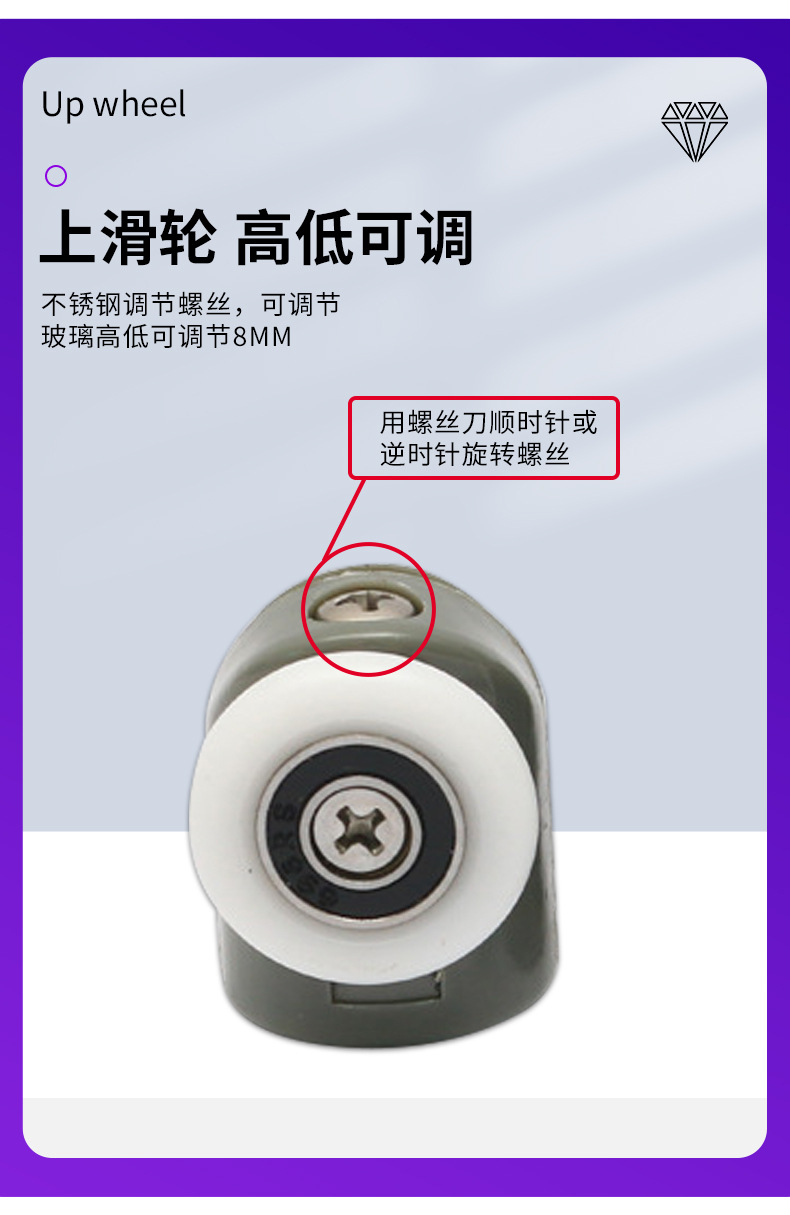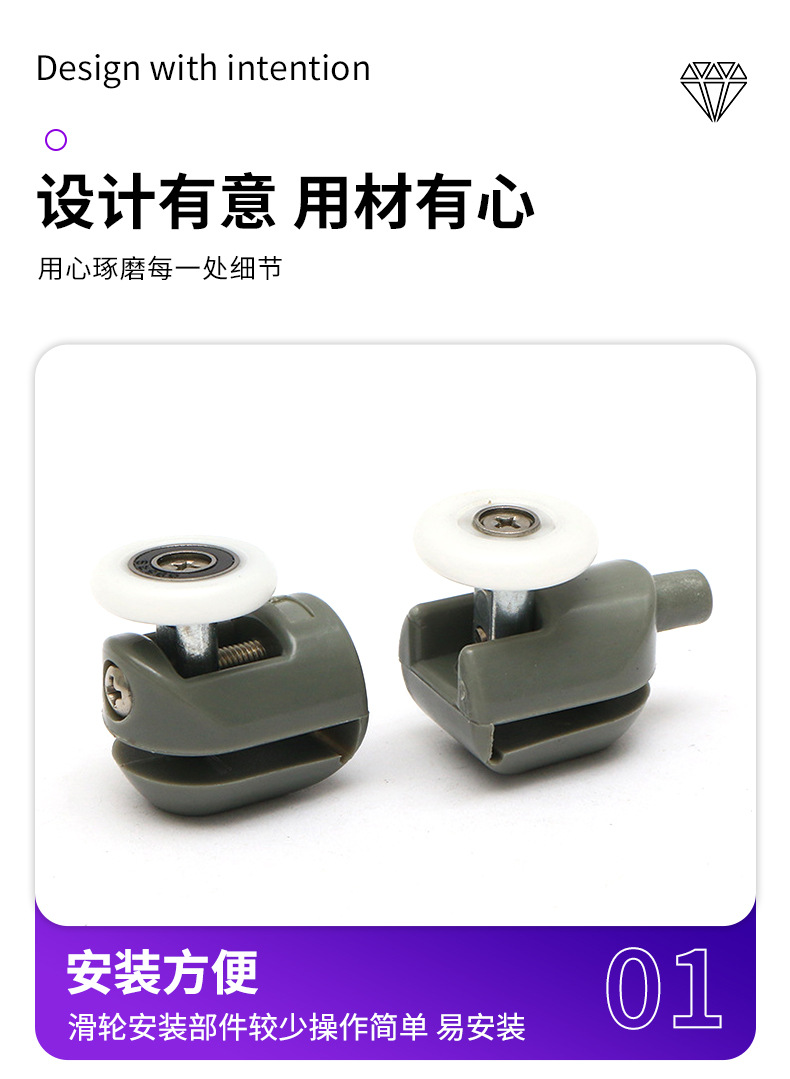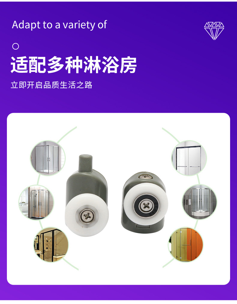 | 产品名称:推拉门尼龙滑轮 | 适用范围:各种淋浴房 |