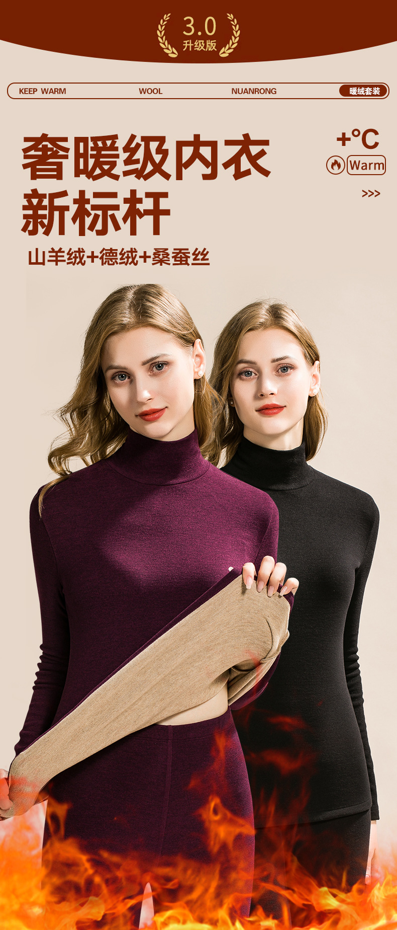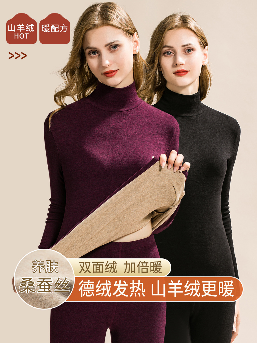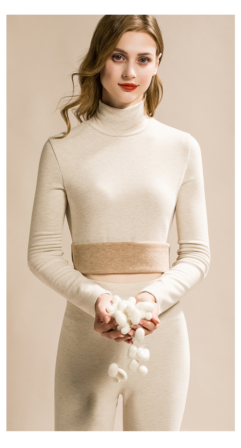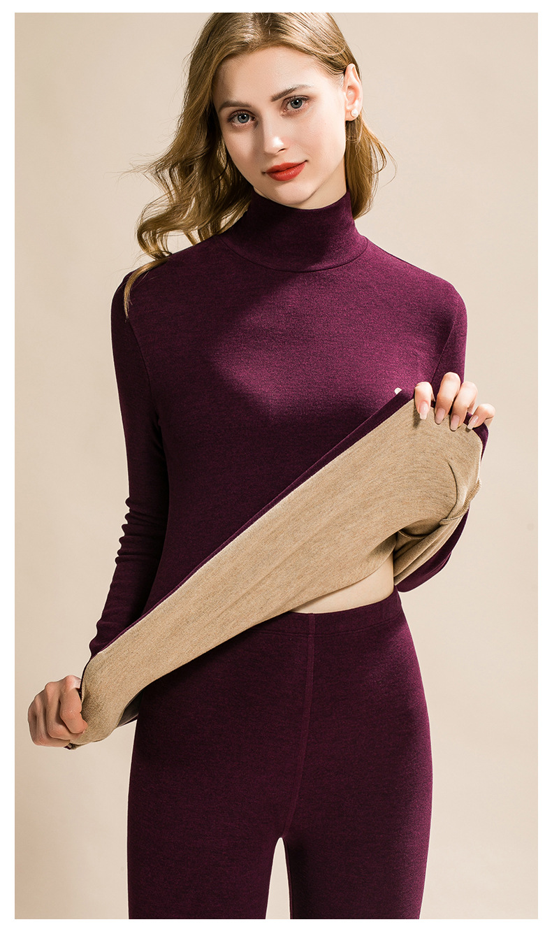 Комплект термобелья с высоким воротом 2025: новая женская термокомплект с антибактериальным эффектом, флисом и утолщенной подкладкой для осенней одежды