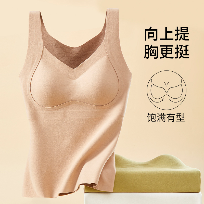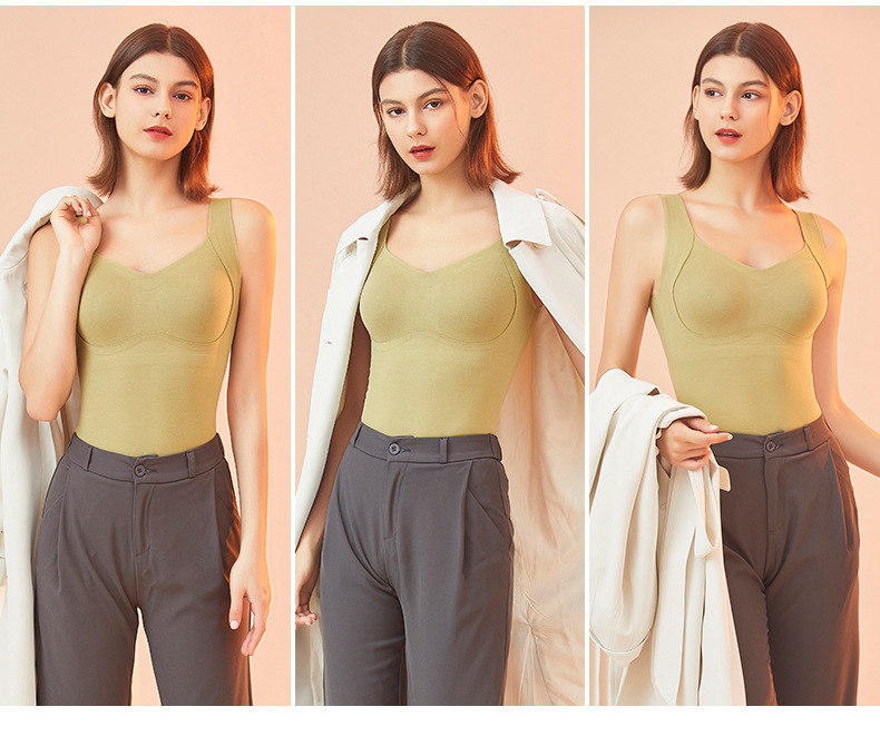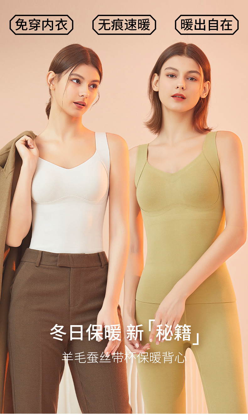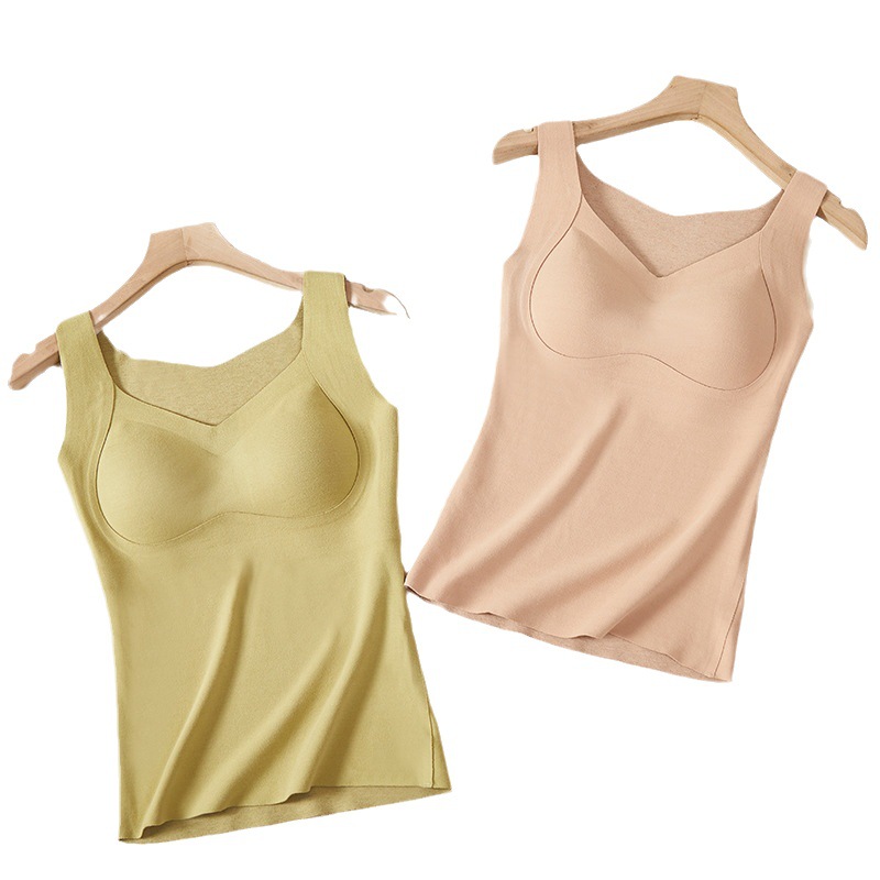 Бесследное нижнее белье из Кашемирового шелка, Женский терможилет с нагрудной подушечкой, двустороннее шлифование, бактериостатический Базовый Топ 5A
