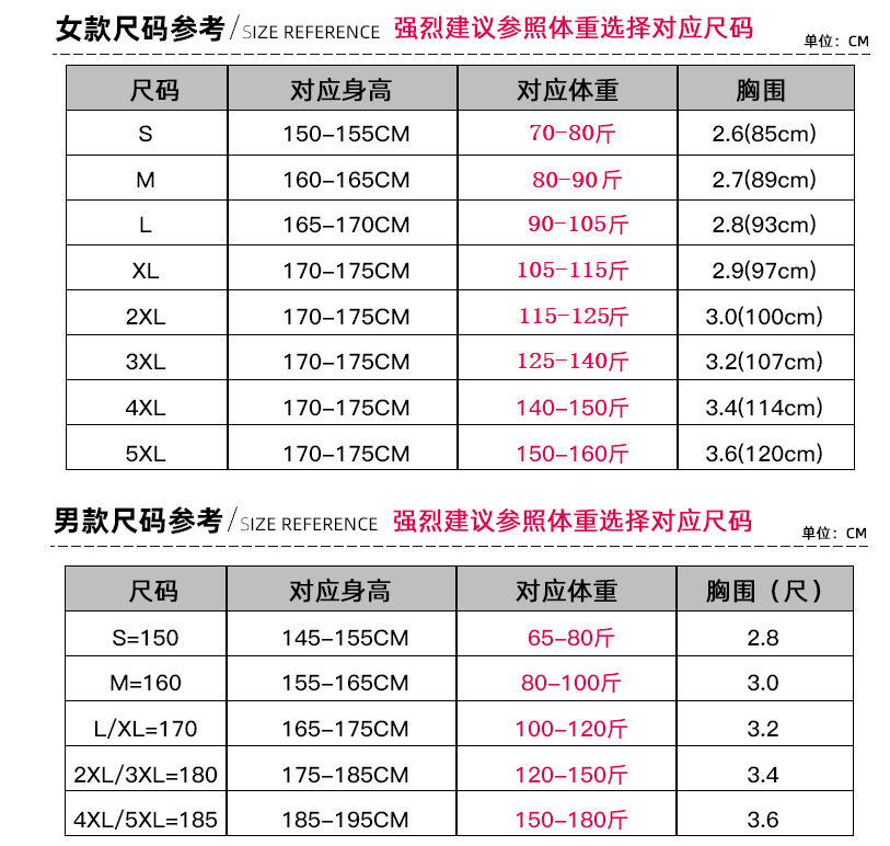 S; M; L; XL; 2XL; 3XL; 4XL; 5XL