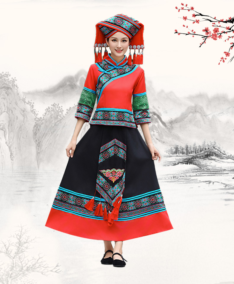 Гуанси 3 марта Чжуан этническое меньшинство традиционный костюм женский взрослый спектакль танцевальное платье песня ярмарка фестиваль костюм