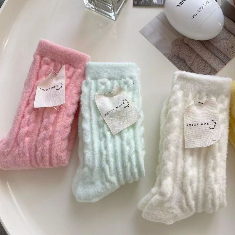 Мягкие клейкие плюшевые носки, детские осенне-зимние утолщенные Носки цвета Макарон на флисовой подкладке, средние носки для девочек, Холодостойкие детские носки, толстые