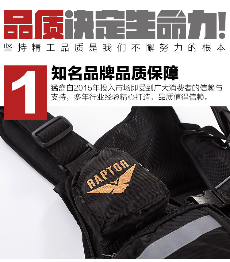 猛禽系列救生衣,新颖的设计,精良的选材,扎实的做工和完善的质检铸就了猛禽优良的品质。