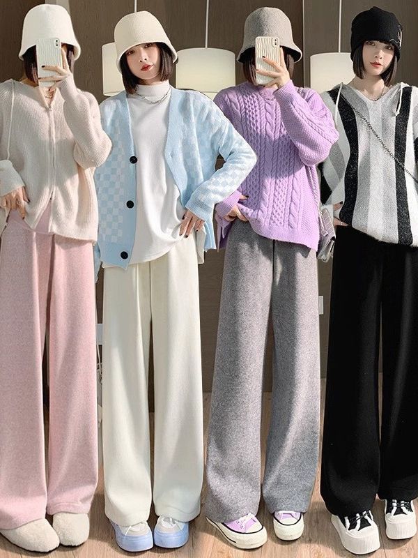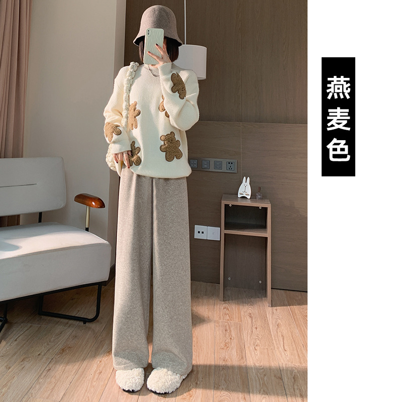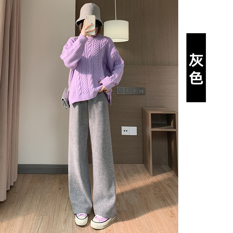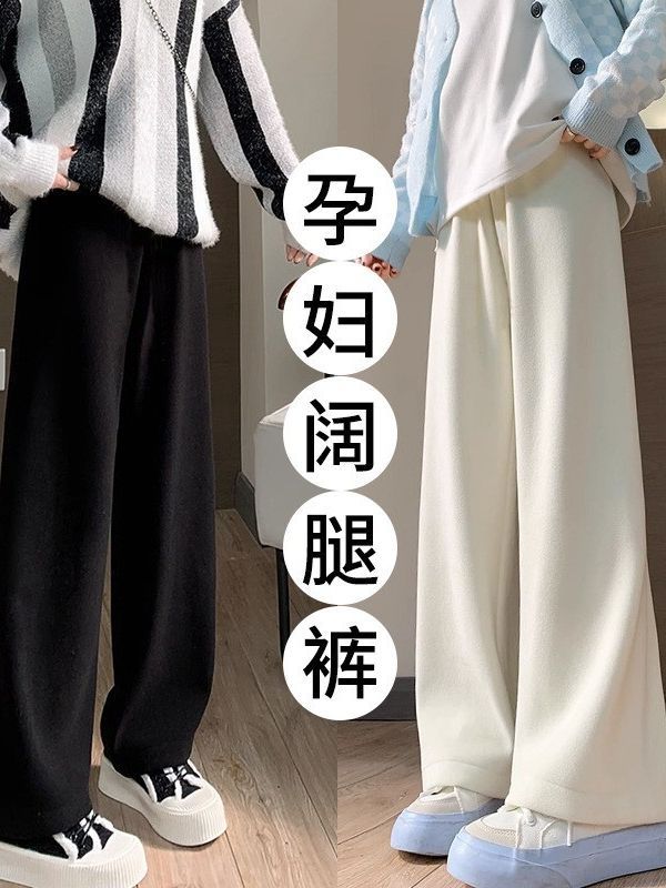 Новые широкие брюки на флисовой подкладке для беременных женщин, осенне-зимние брюки-полотенце, верхняя одежда, прямые брюки, маленькие брюки до щиколотки