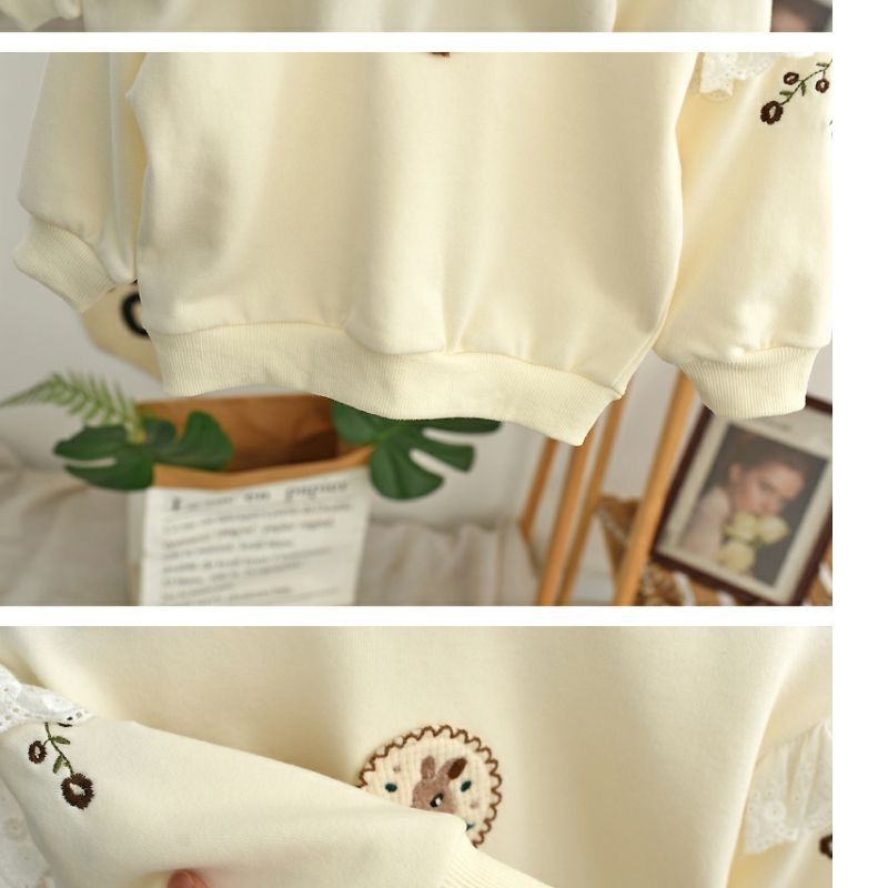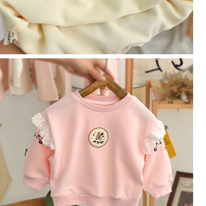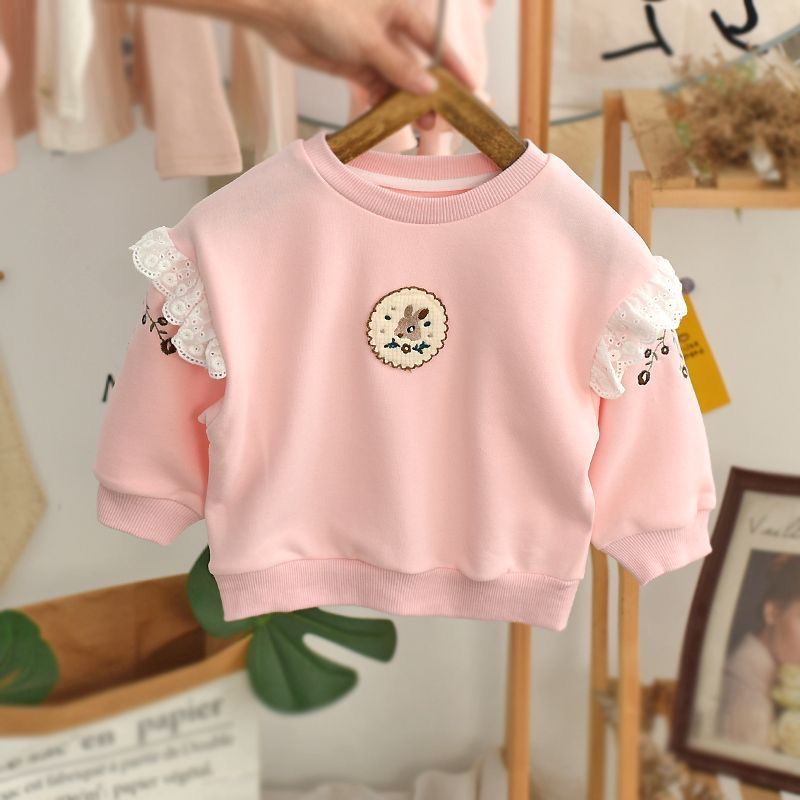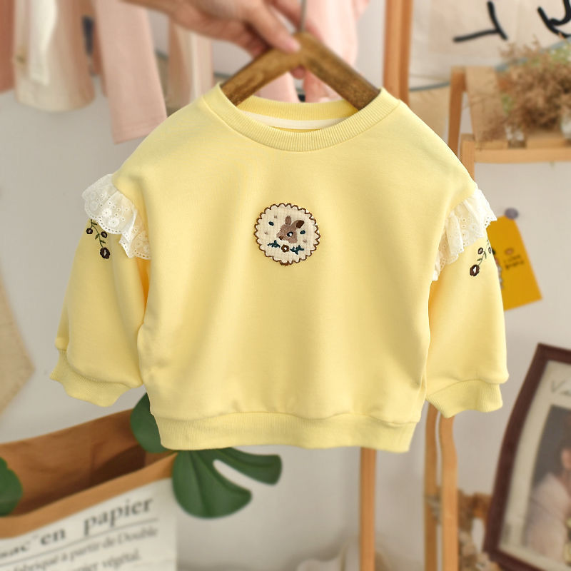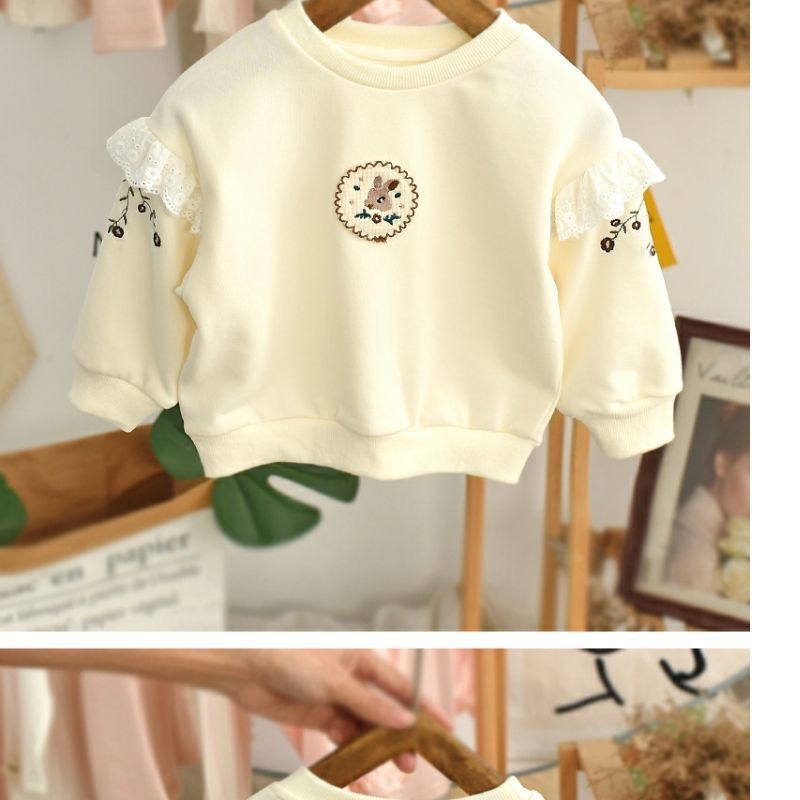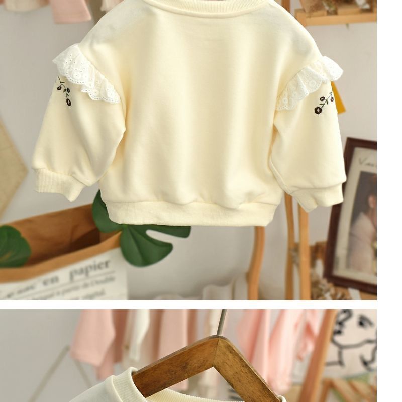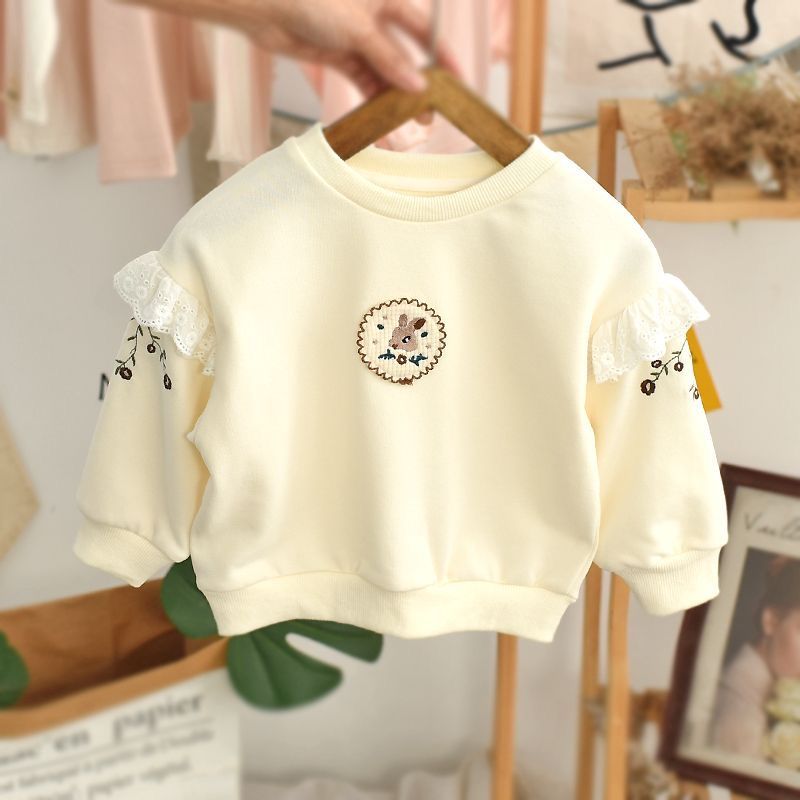 Весна и осень 2024, новый стиль, пуловеры с вышивкой для девочек, толстовки для детей маленьких и средних размеров, модные и милые топы оптом
