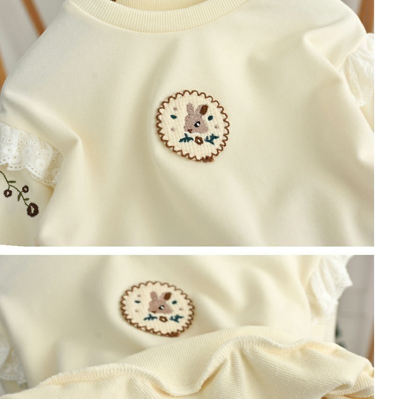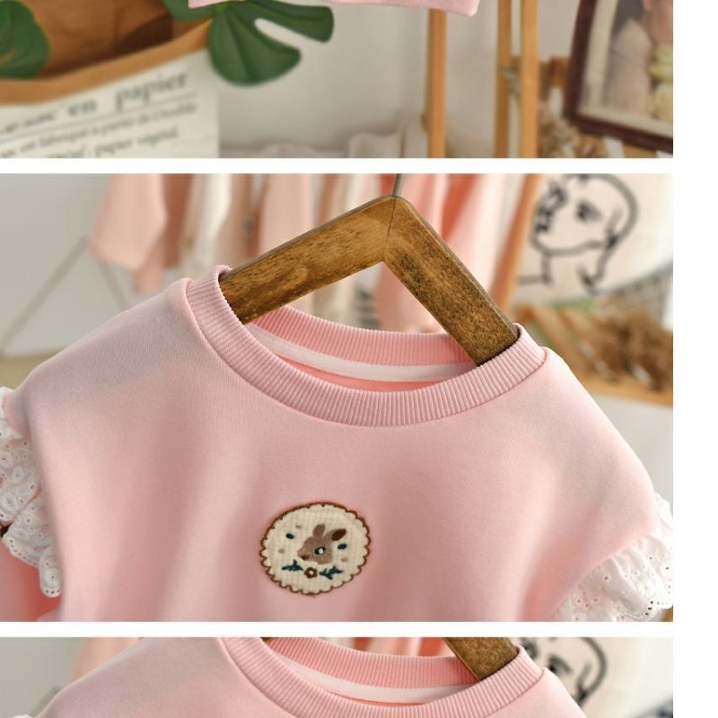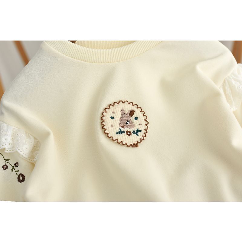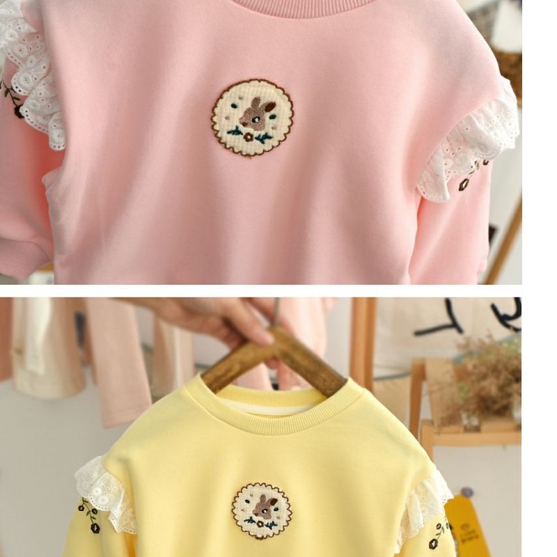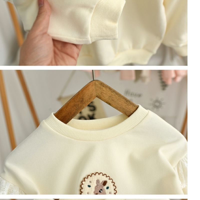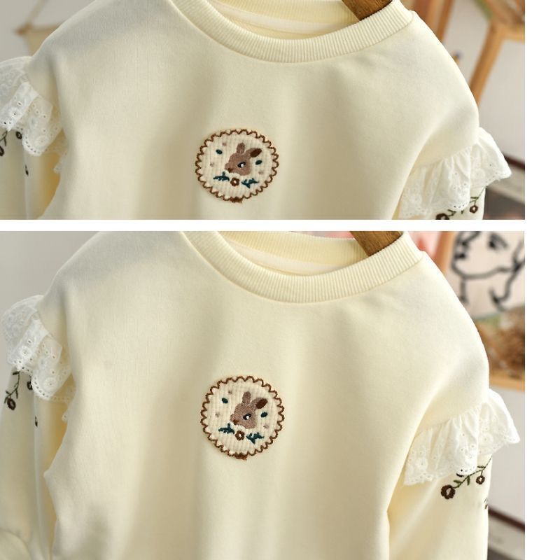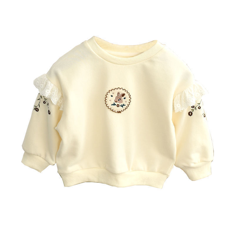 Весна и осень 2024, новый стиль, пуловеры с вышивкой для девочек, толстовки для детей маленьких и средних размеров, модные и милые топы оптом