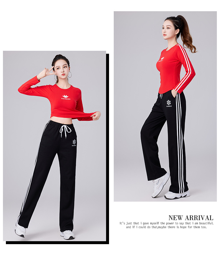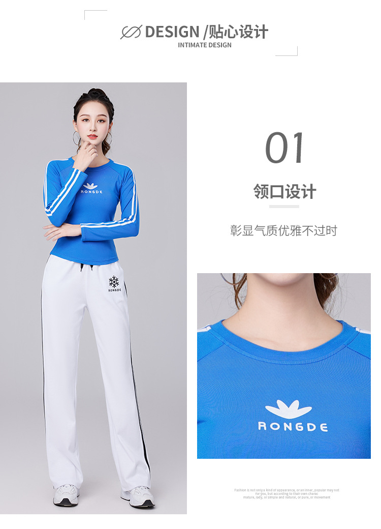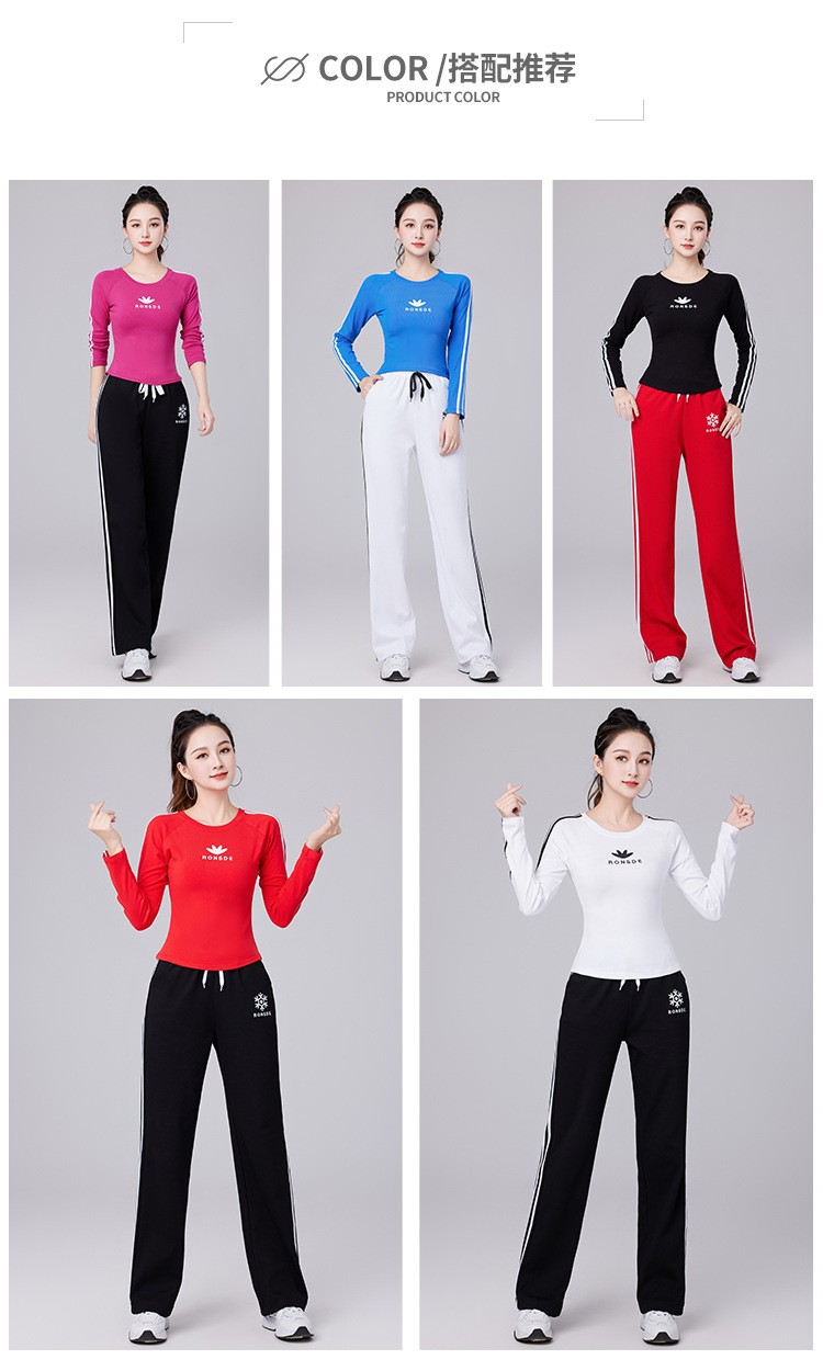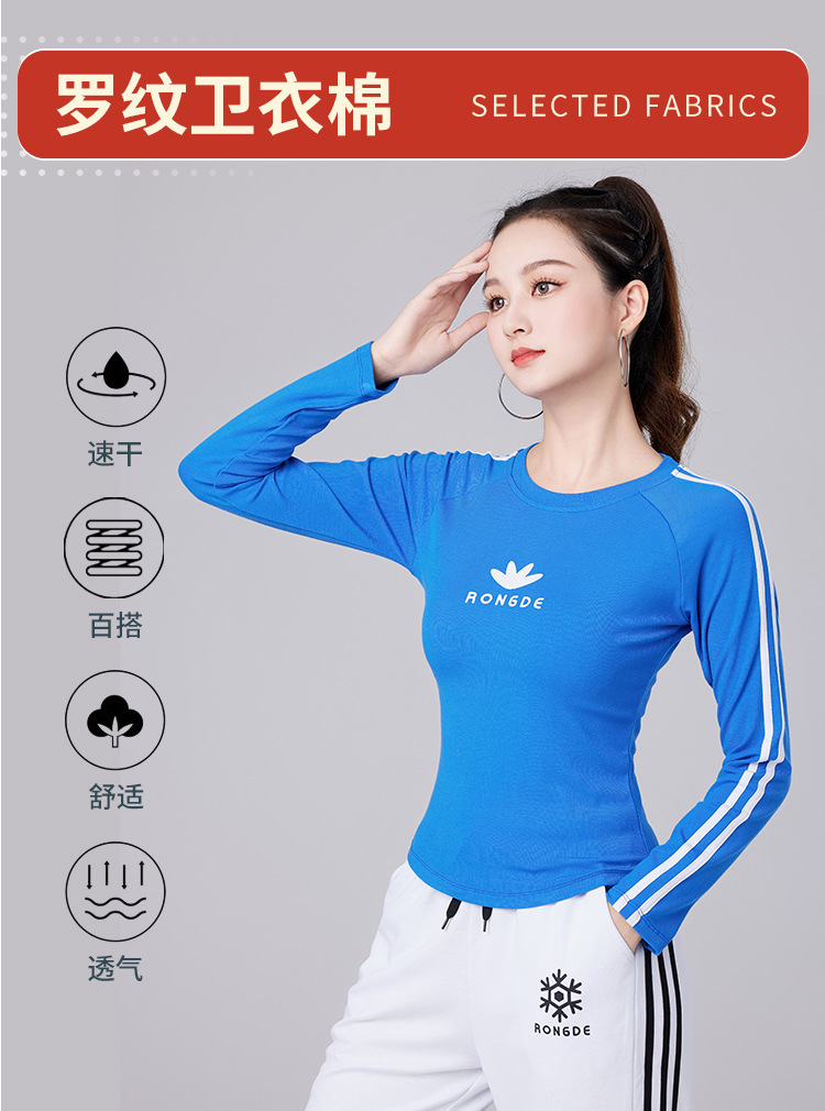 Осенний новый спортивный костюм-футболка с длинным рукавом из хлопка в рубчик Yang Liping Квадратная танцевальная одежда Женская танцевальная одежда