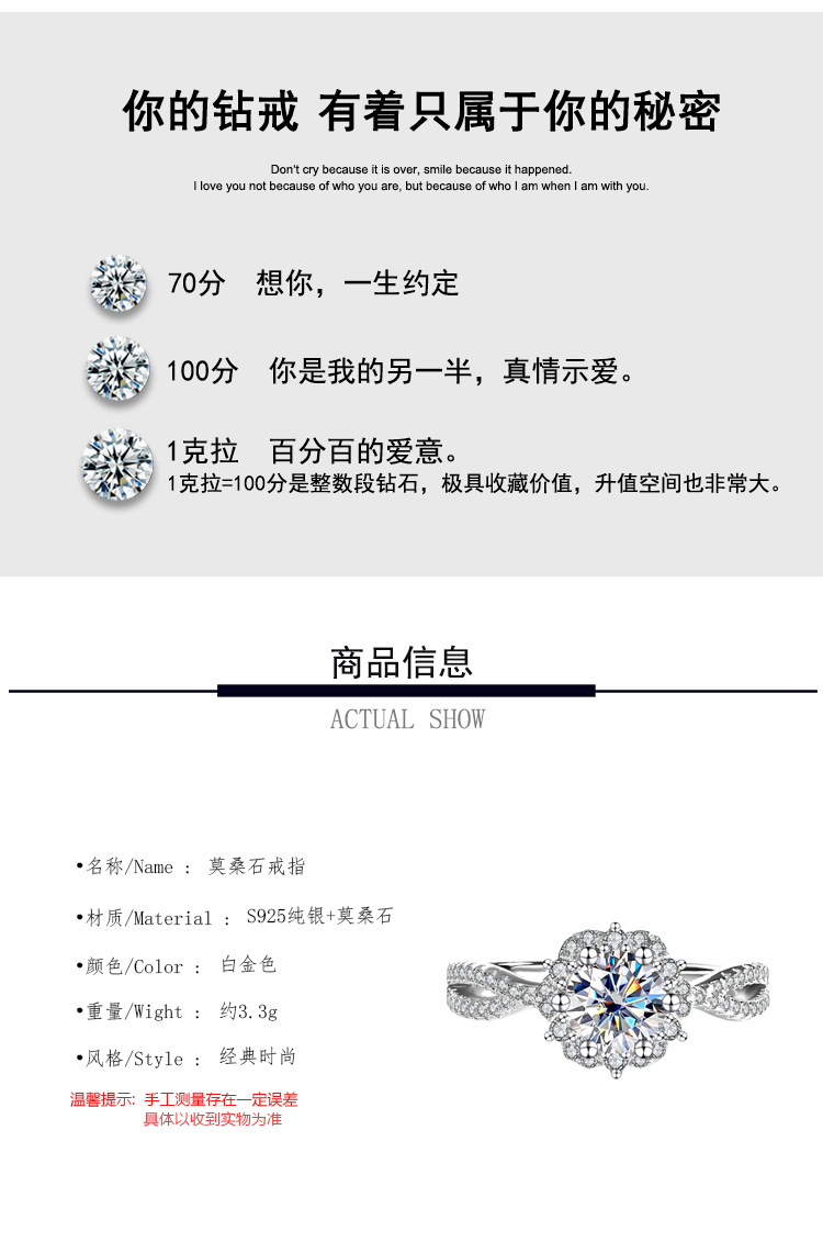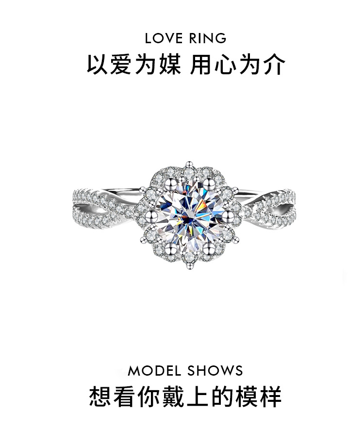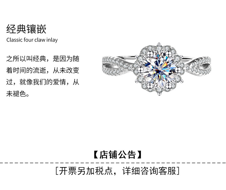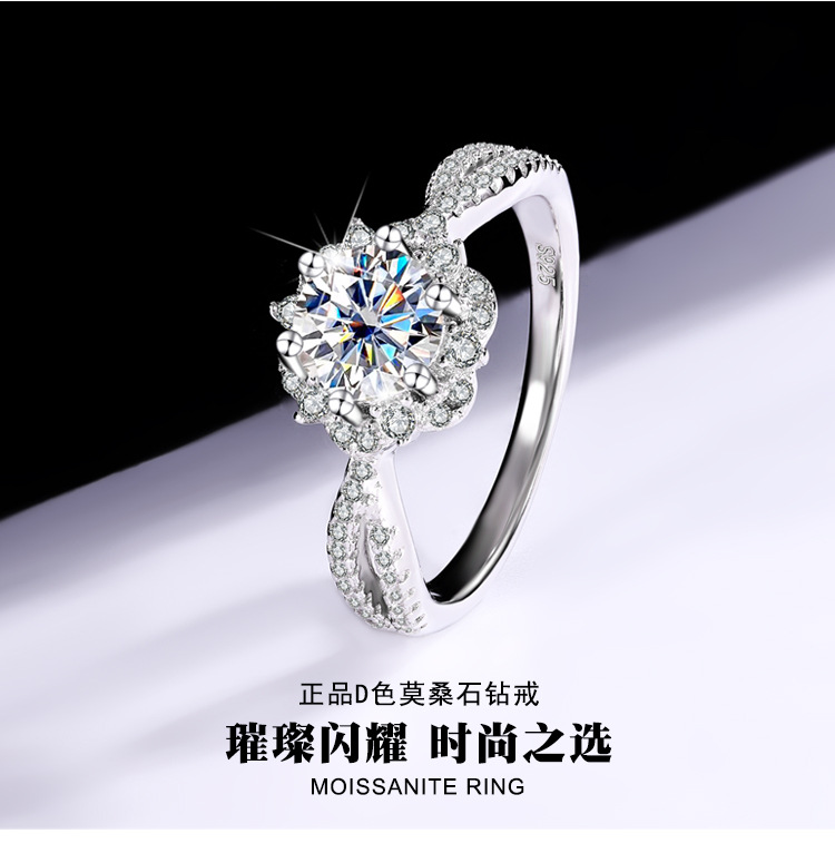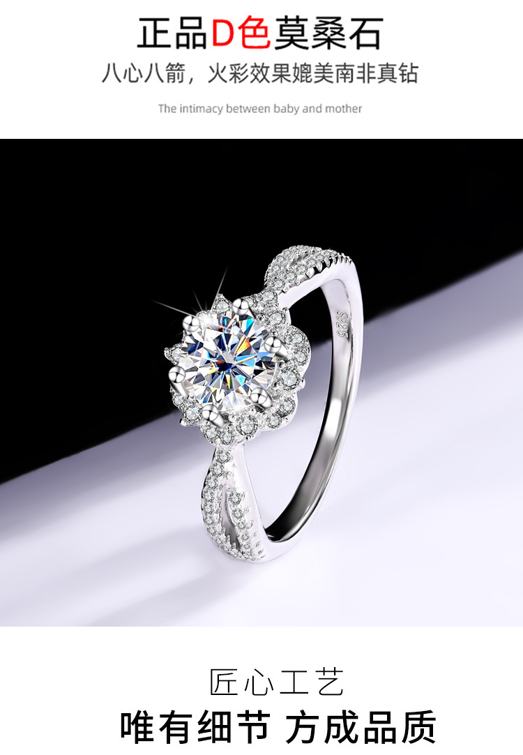 Трансграничный S925 стерлингового серебра Princess Aisa один цвет D цвет Мосанг бриллиантовое кольцо женская сеть красные дикие украшения оптом